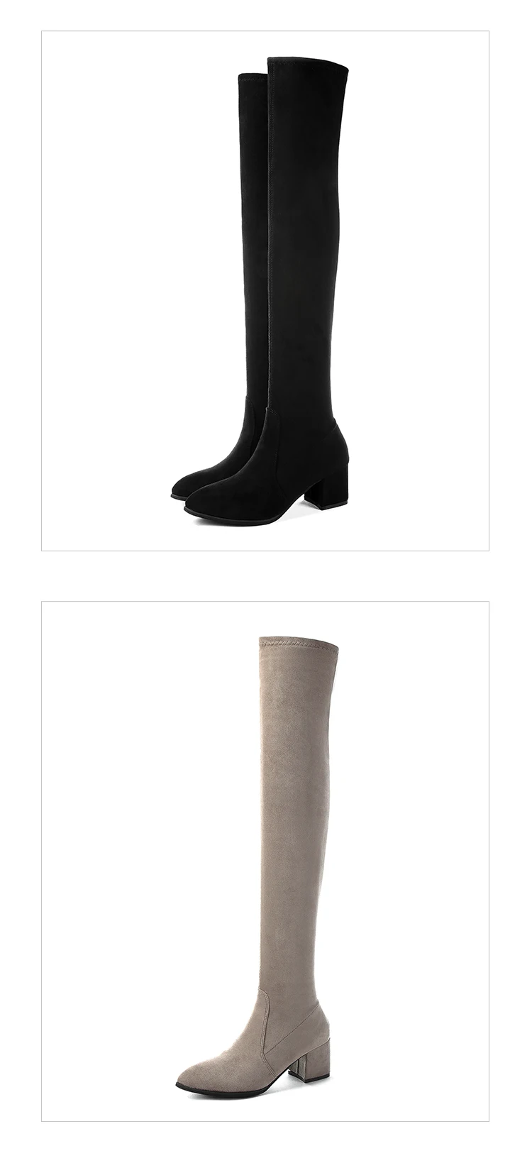 Женские сапоги выше колена, зимние универсальные сапоги с острым но...