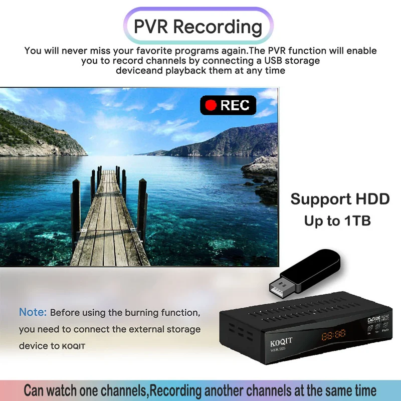Вы больше никогда не пропустите ваши любимые программы. Функция PVR позволит вам записывать каналы, подключив usb-накопительЗаписывает и воспроизводит их в любое время.Можно смотреть один канал, записывать другие каналы одновременно