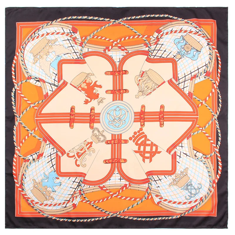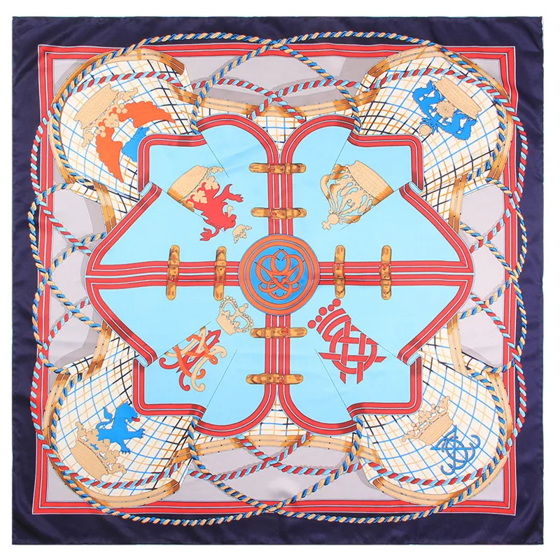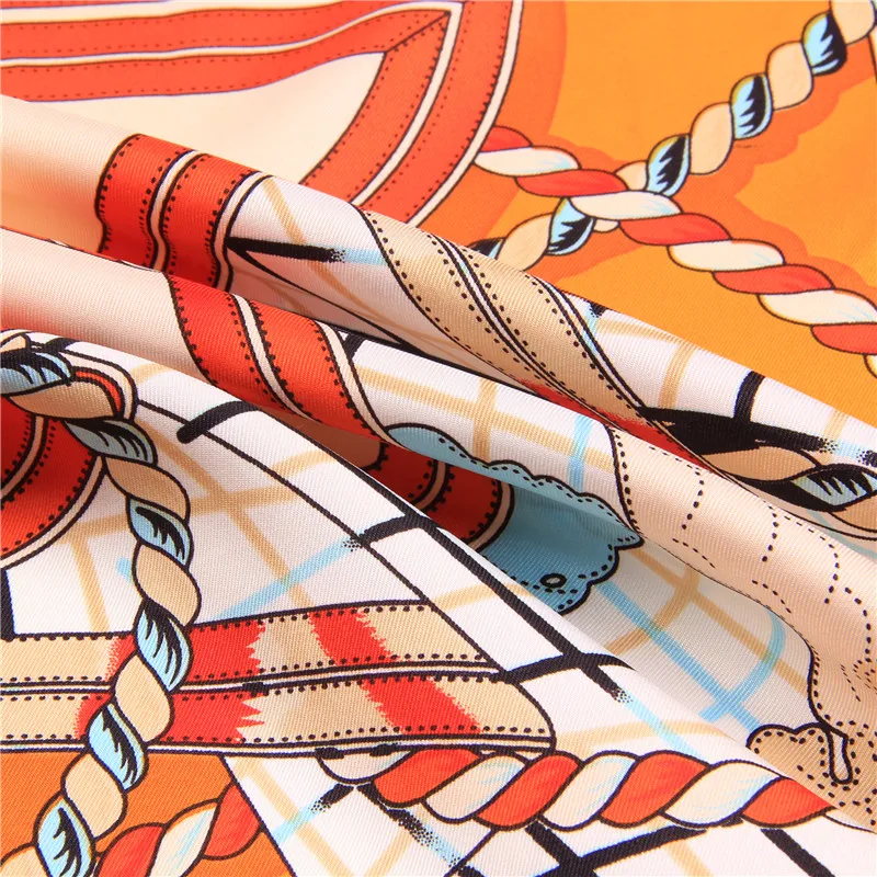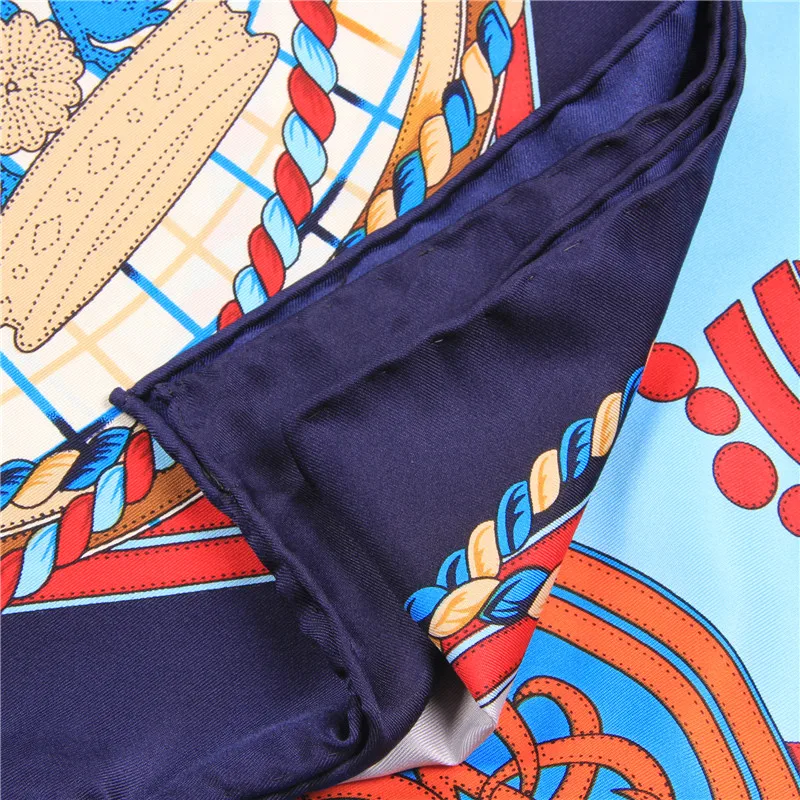 Ручная работа, саржевый шелковый шарф, женские квадратные шарфы с геометрическим принтом и цепочкой, шарфы, шарфы, Женская бандана, хиджаб 90 см