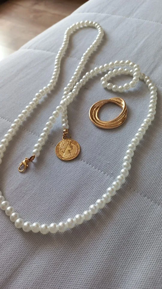 Многослойное жемчужное ожерелье в стиле панк, хип-хоп, монета с пор...