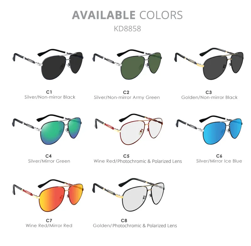 Солнцезащитные очки KDEAM KD8858 мужские фотохромные, дизайнерские поляризационные зеркальные антибликовые солнечные очки в стиле пилота для вождения автомобиля