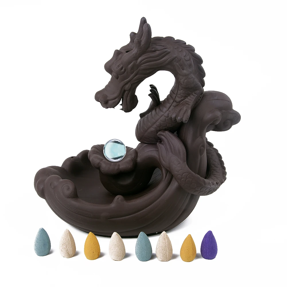 Керамическая курильница Dragon, ароматизатор Водопад с обратным потоком, Освежающая курильница для украшения дома, офиса, пирожного, чистого воздуха