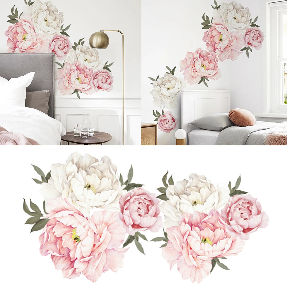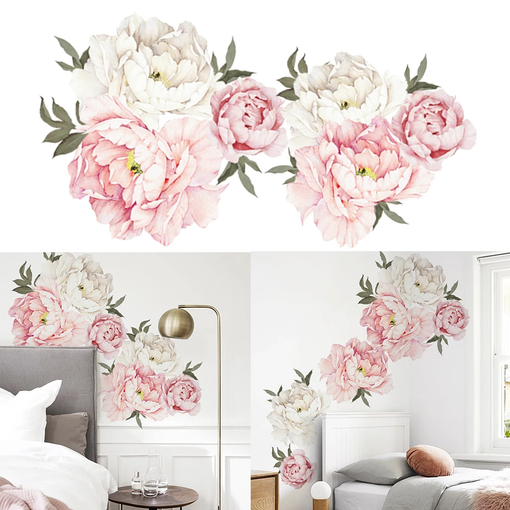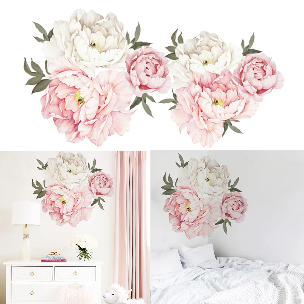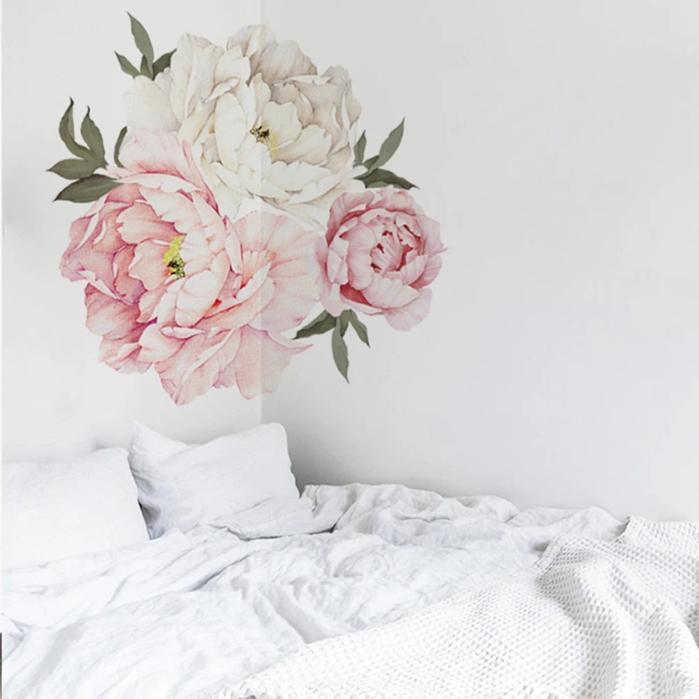 Водостойкая Наклейка на стену, моющаяся, съемная, с пионами, цветами, наклейка для украшения детской