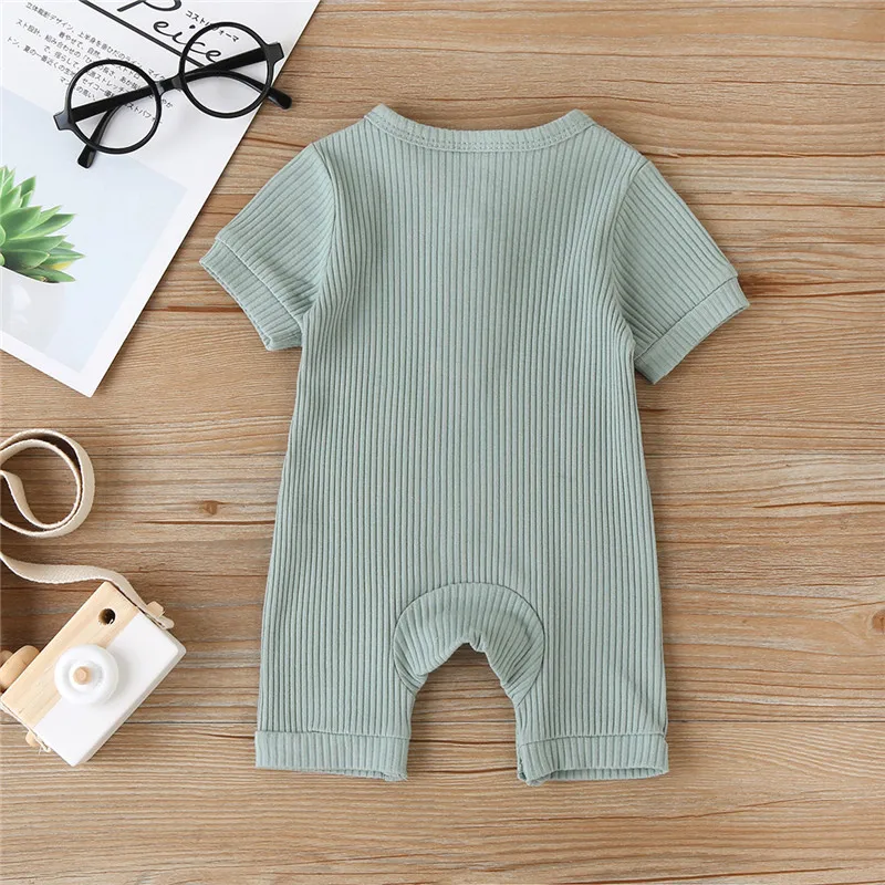 Комбинезон детский, хлопковый, в рубчик, с коротким рукавом
