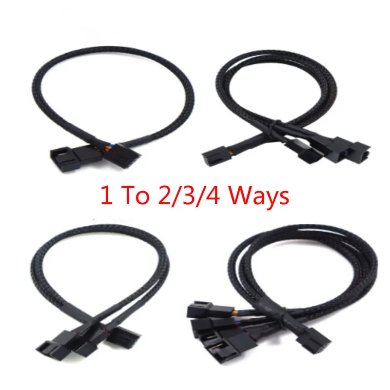 4 Pin Pwm кабель вентилятора от 1 до 234 способов сплиттер черного цвета с длинными рукавами 27 см Удлинительный кабель Разъем 4Pin PWM удлинители