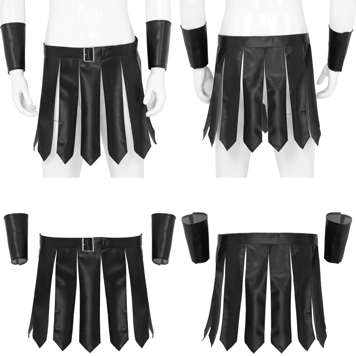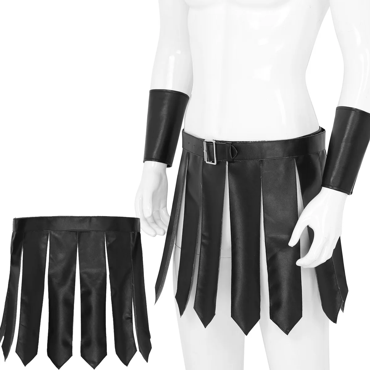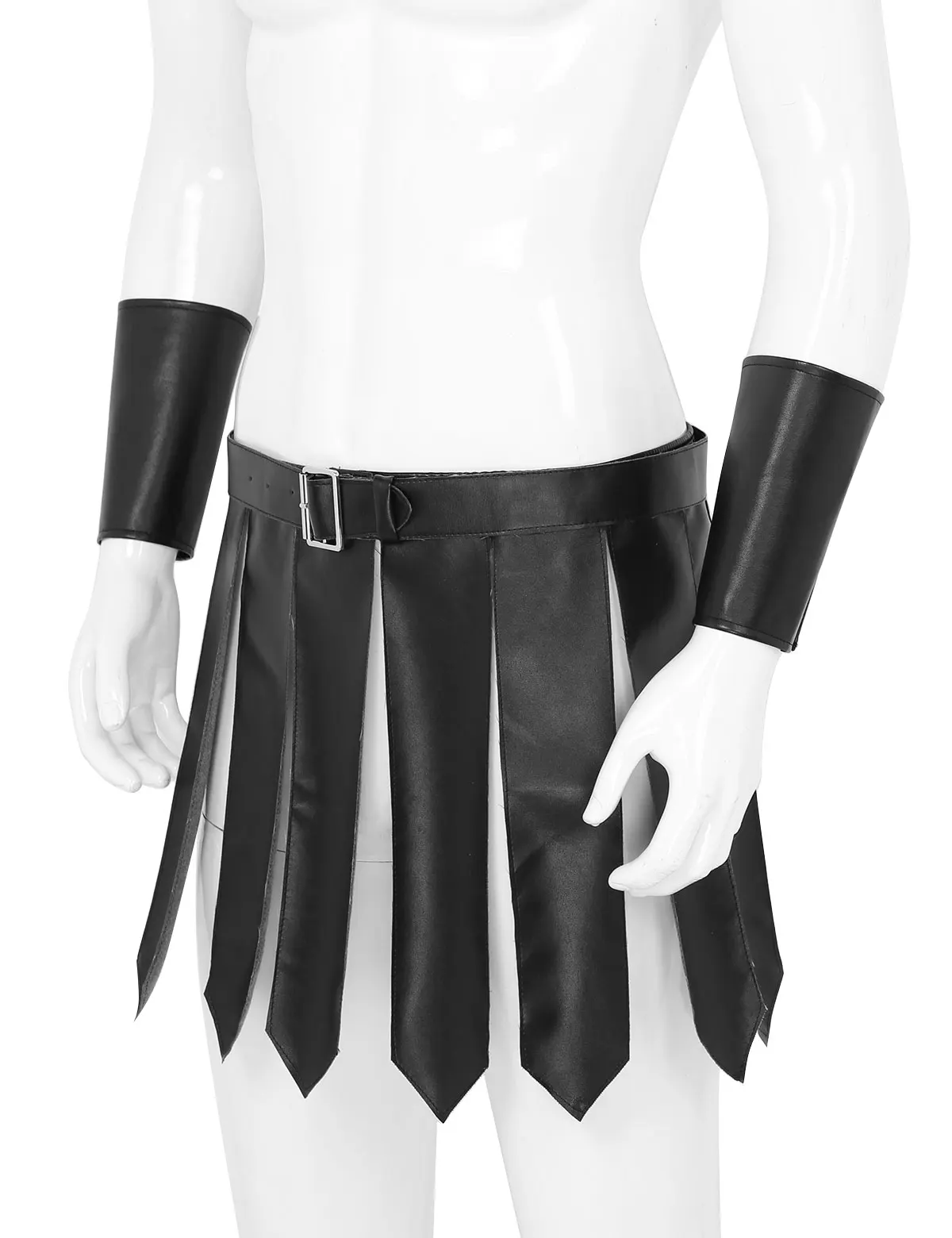 Мужской костюм в римском стиле гладиатора, из искусственной кожи, с вставками, с ремешком на запястье, юбки с ремнем