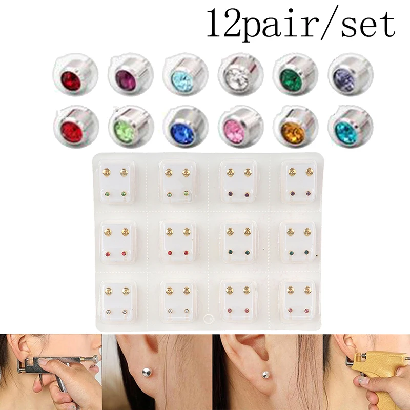 12 пар хирургических стальных ушных серег, набор медицинских серег,...