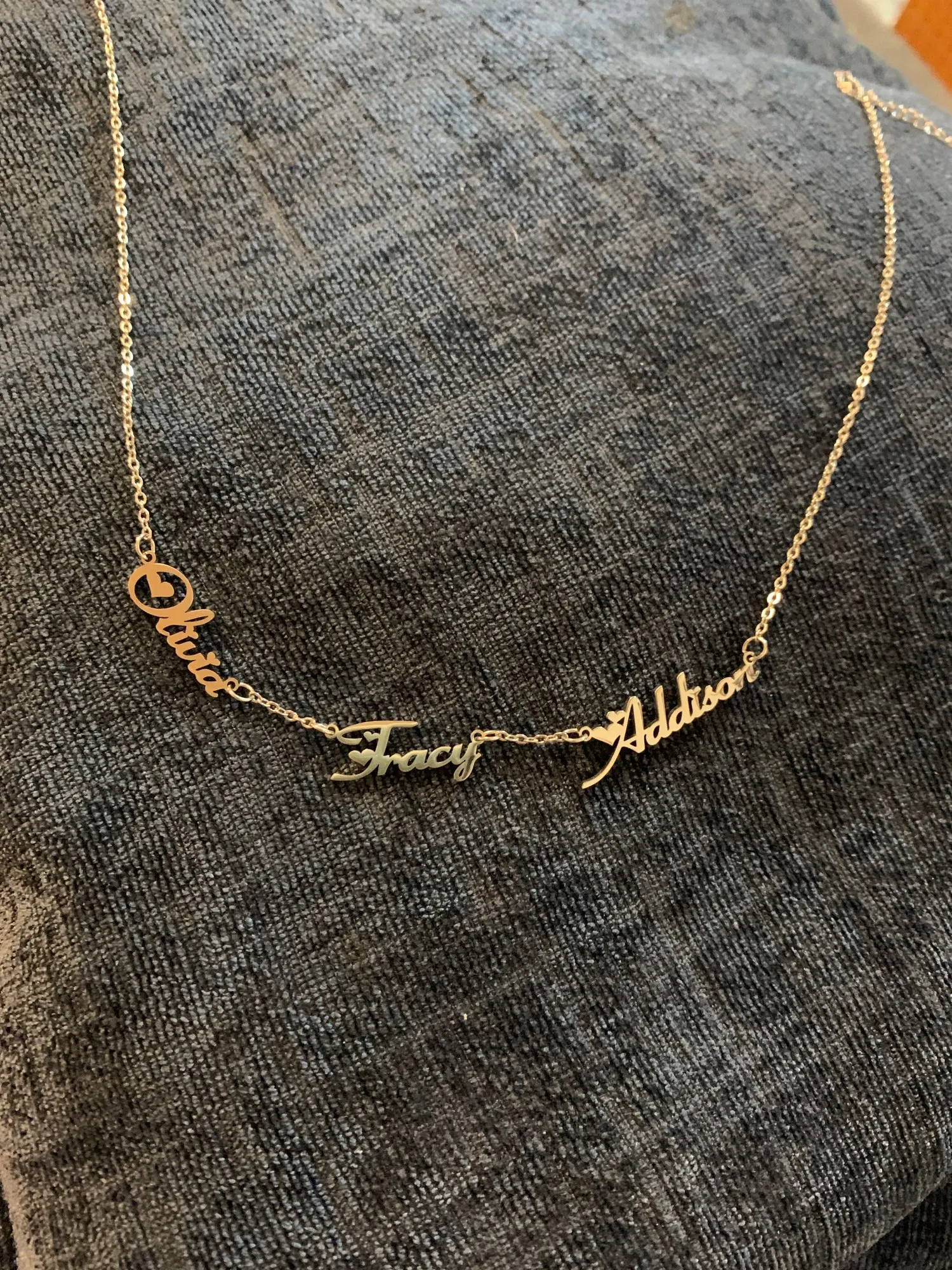 Я не получил то, что заказал, но получил два ожерелья с именем вместо этого. Я открыл спор, продавец возместил мне часть напрямую. Ожерелья качественные, хороший продавец, я рекомендую! Ожерелья не ржавеют. Я принимаю душ с