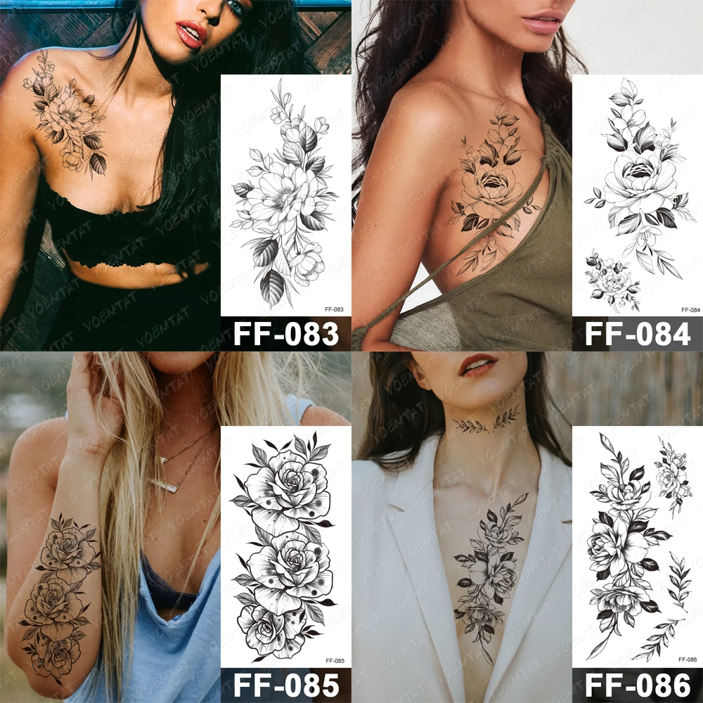 переводная для девочек татуировка наклейки на ногти рукав Цветок Цветущий водонепроницаемый временная татуировка наклейка пион Орхидея Лилия Роза красота тату боди-арт поддельные татуировки Черный Человек Женщины