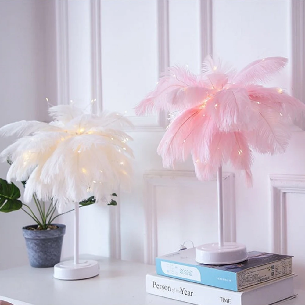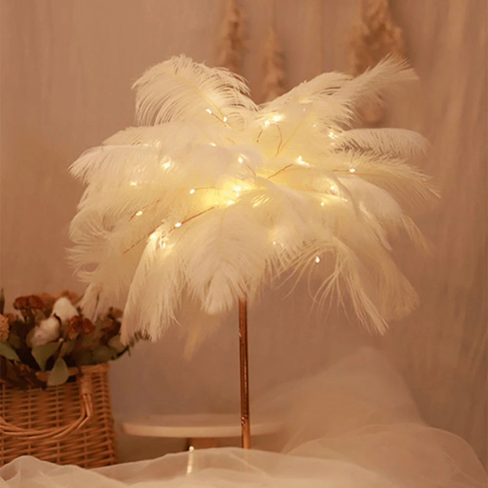 Настольная лампа с перьямиСветодиодный светильник в комплектеСтиль батареи:Длина пера 10-15 смКоличество перьев: 40 шт.Питание: батарея AA (батарея не входит в комплект)Размер изделия: 21,8*9 смМатериал: характеристика, пластик, светодиодныйТип USB/батареи:Питание: аккумулятор + USB + пульт дистанционного управленияДлина пера: 15-20 смКоличество перьев: 40 шт.Размер продукта: 33,5*10,5 смМатериал: особенность, металл, светодиодныйМощность питания AC/DC 4,5 VПульт дистанционного управления: включение/выключение, изменение яркости, режим освещения и функция таймераПрименение: спальня, прикроватная кровать, подарок на день рождения, Свадебные украшения и так далее