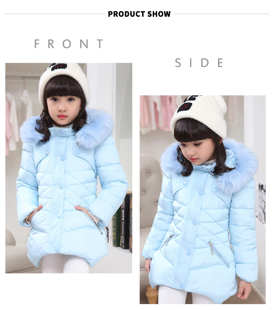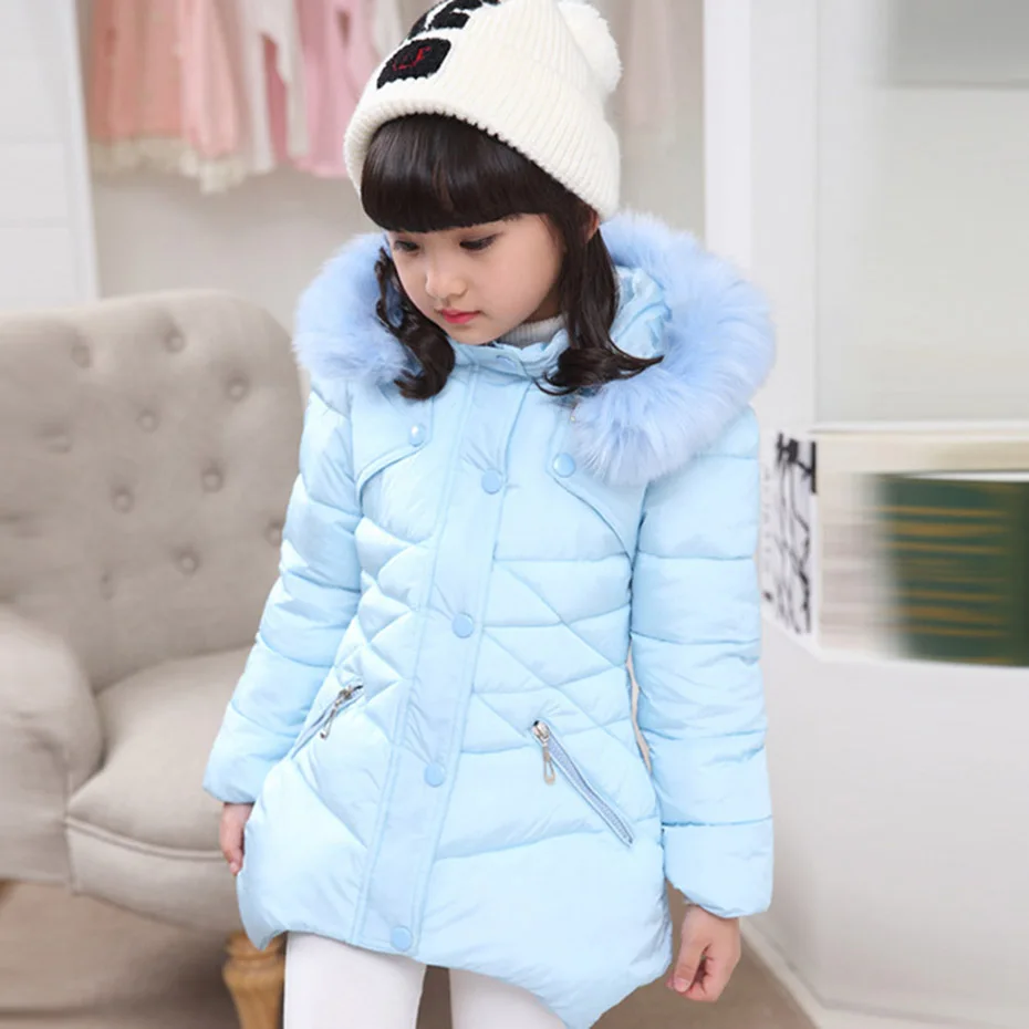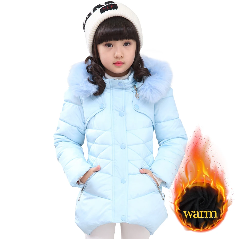 Теплая пуховая куртка для девочек, Длинная зимняя парка с меховым к...