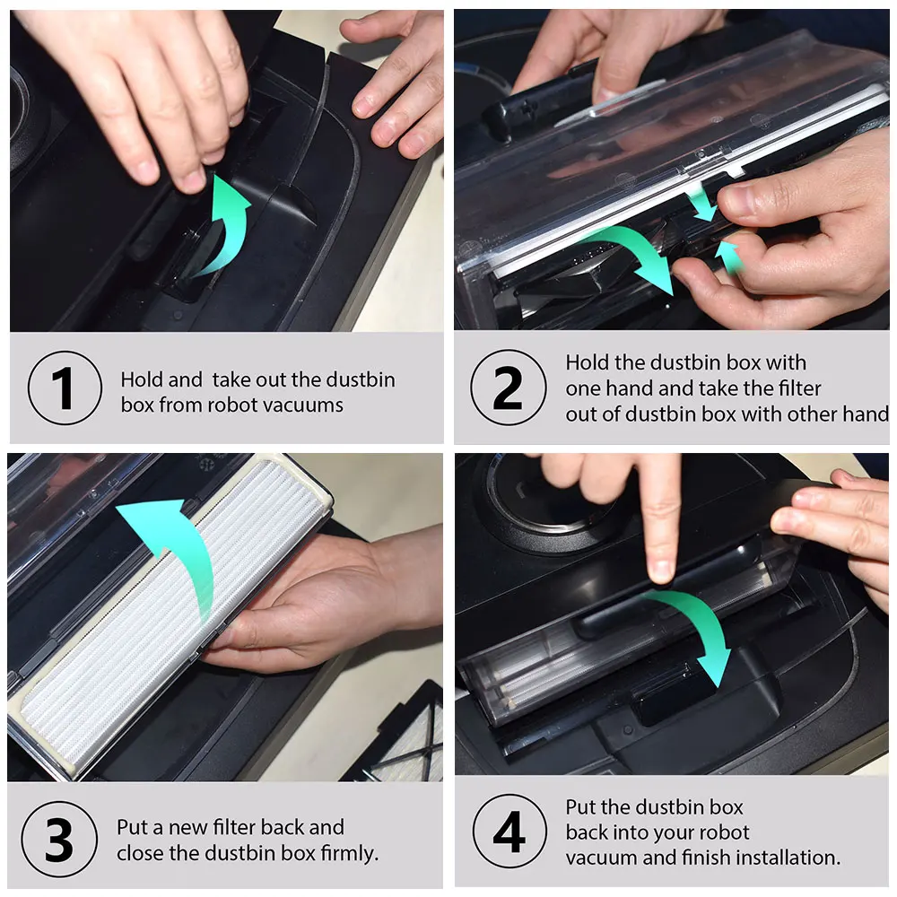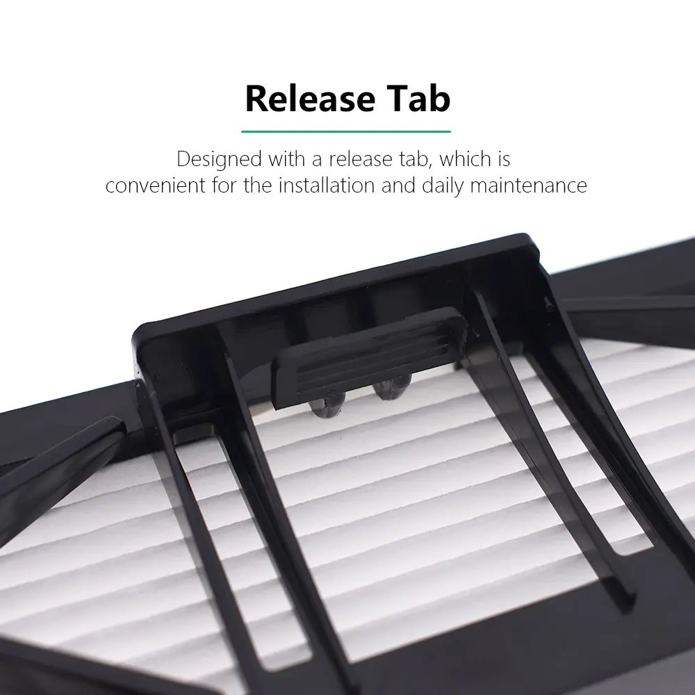 1) фильтр HEPA-style использует HEPA материал E12 и улавливает до 99.5% пыли, аллергенов и частиц.2), превосходный выбор волос домашних животных, грязи, пыли и мусора и работает на типах пола-лиственных пород, ковров и плитки.3) боковая щетка дает вам дополнительную гарантию, что вы получаете прямо против стен и глубоко в углы для превосходного покрытия очистки.4) детали и аксессуары изготовлены из экологически чистых материалов и почти не требуют технического обслуживания.5) чтобы ваш робот работал на пике производительности, рекомендуется заменять детали каждые 2-3 месяца.6) его легко заменить и установить на робот-пылесос.7), доставка с коричневой коробкой, чтобы предотвратить повреждение при транспортировке.
