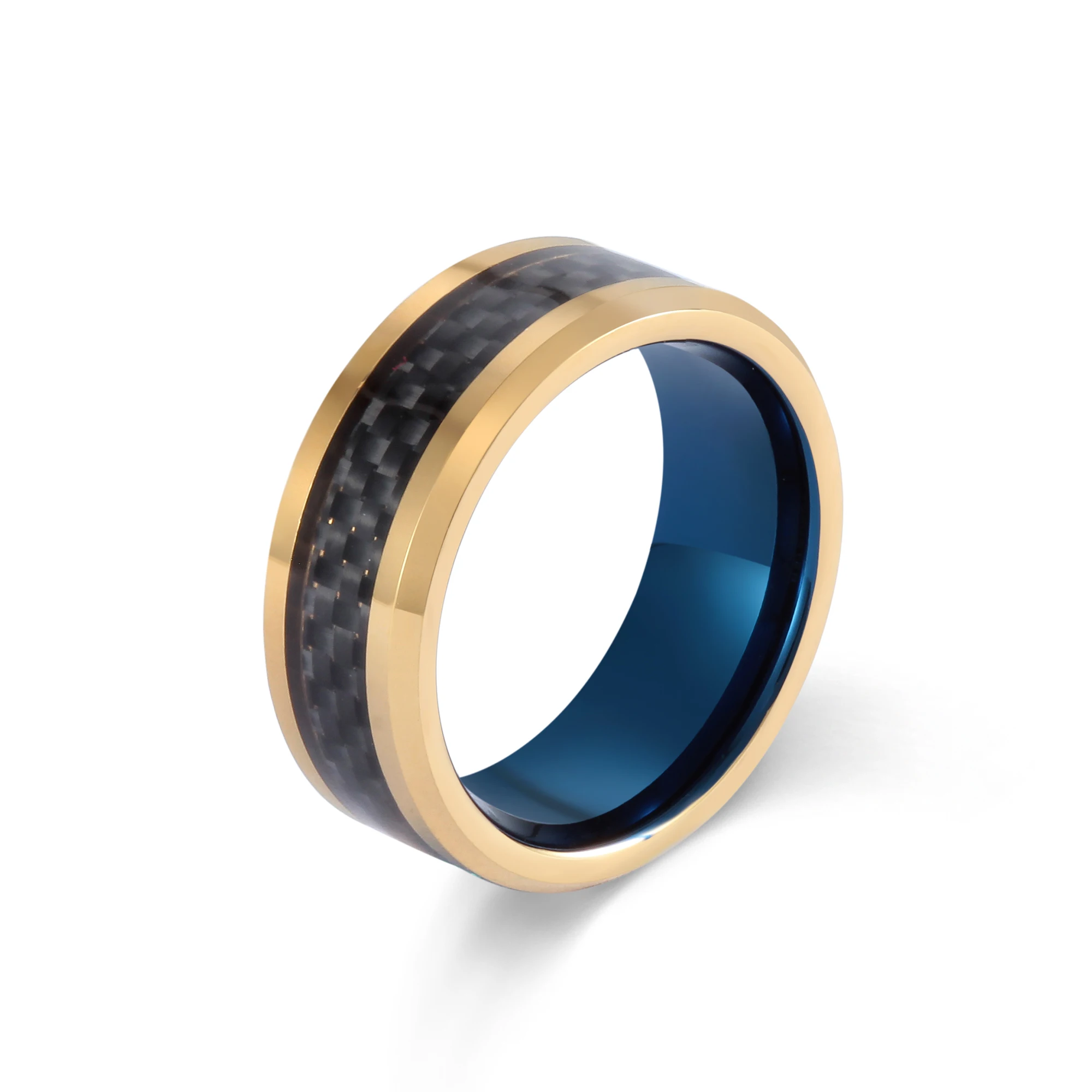 POYA 8 мм золотые скошенные края вольфрамовое кольцо с синим покрытием Внутренняя Обручальная лента с черной инкрустацией из углеродного волокна