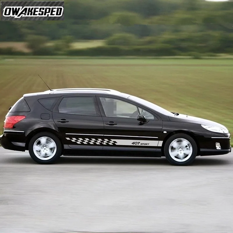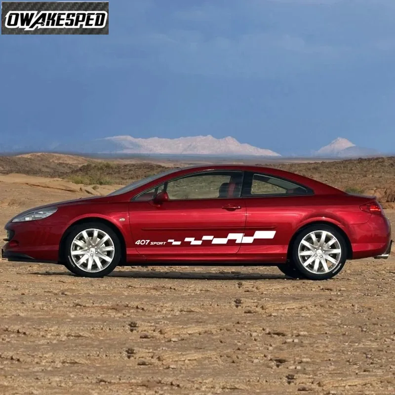 Для PEUGEOT 407 ST SW Coupe автомобильный Декор кузова виниловые наклейки двусторонние спортивные полосы Автомобильная дверь юбка наклейка