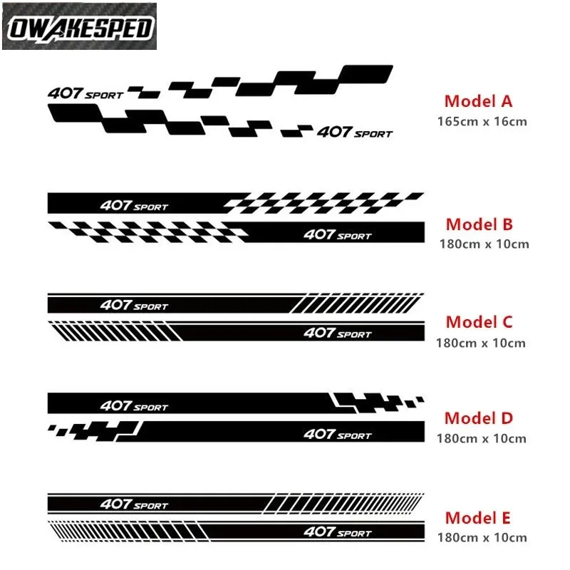 Для PEUGEOT 407 ST SW Coupe виниловые наклейки на кузов с обеих сторон, спортивные полосы, наклейка на дверь автомобиляОписание:100% новый (никогда не был использован или установлен)