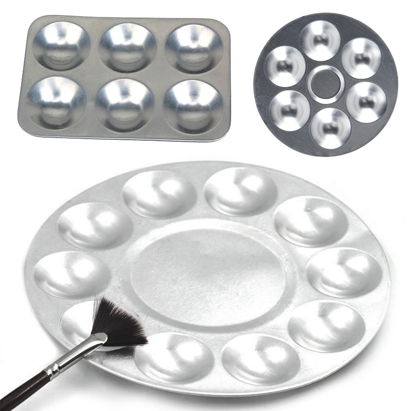 1 шт., Краски алюминиевый рисунок лоток Цвет Палетка для масла акварель Краски ing поддон 610 клетки прямоугольниккруглый дизайн инструменты