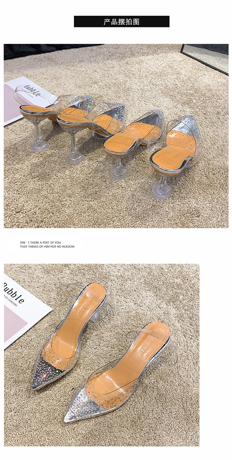 Туфли-лодочки женские прозрачные, высокий каблук, заостренный носок, без застежек, пикантная Брендовая обувь для свадьбыВечеринки, на тонком каблуке