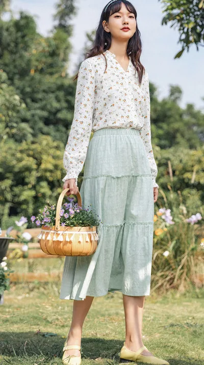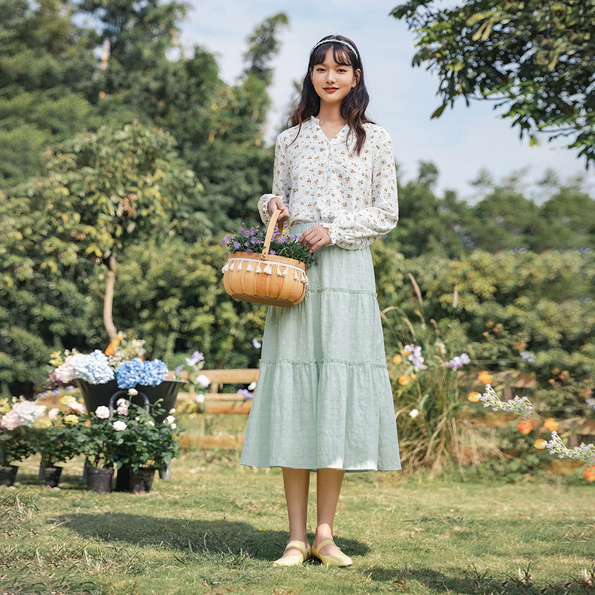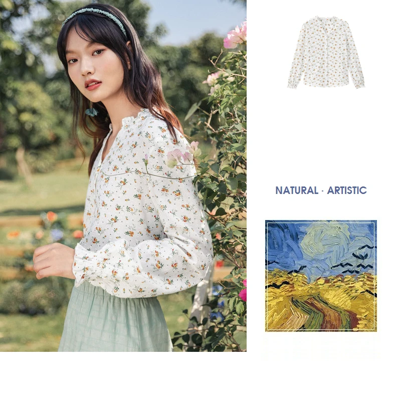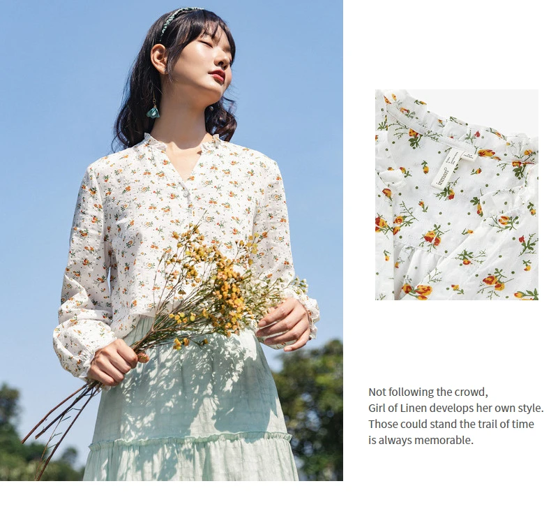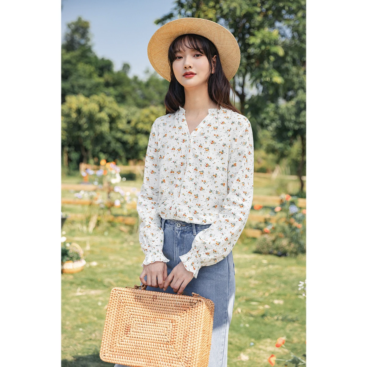 INMAN 2021 весна осень Новое поступление Женская свежая Agaric на шнуровке рукава тонкая Цветочная рубашка с длинным рукавом Seersucker