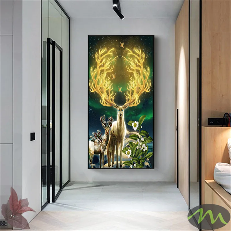 Картина на холсте с изображением лося, Постер и печать, настенные картины с изображением оленей для гостиной, декоративная картина квадратной формы с вешалкой 6-17