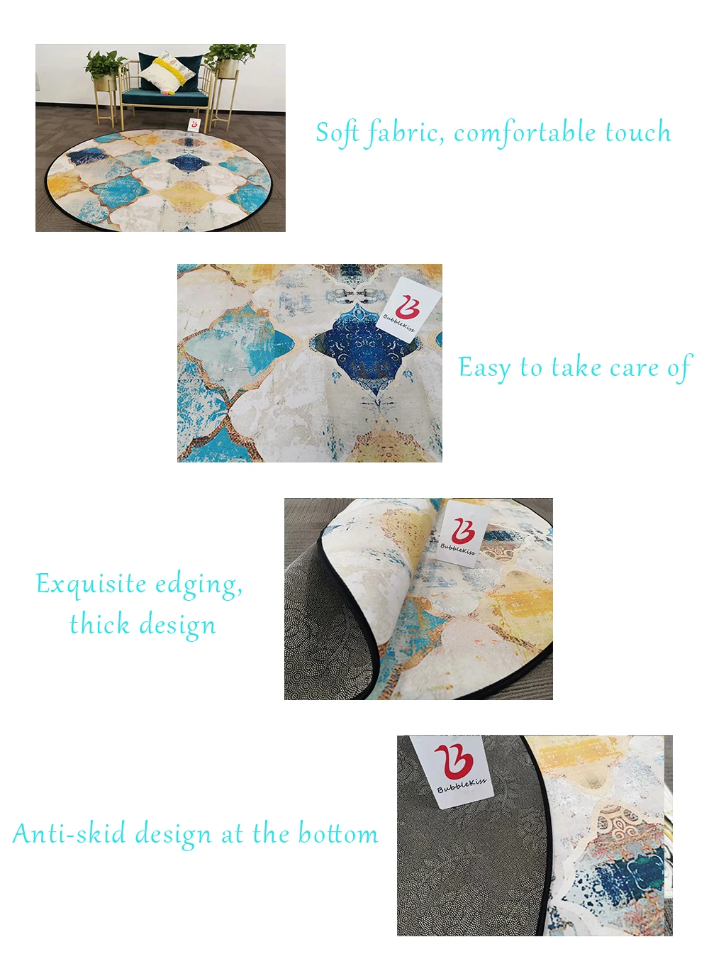 Уважаемые клиенты, наш производственный отдел недавно ввел белый кант для этого ковра. Реальные фотографии ковра следующие, общий эффект чище и красивее. Если вам нужны другие цвета для обрезки, пожалуйста, свяжитесь со службой поддержки клиентов перед оформлением заказа. По умолчанию используется белая окантовка.