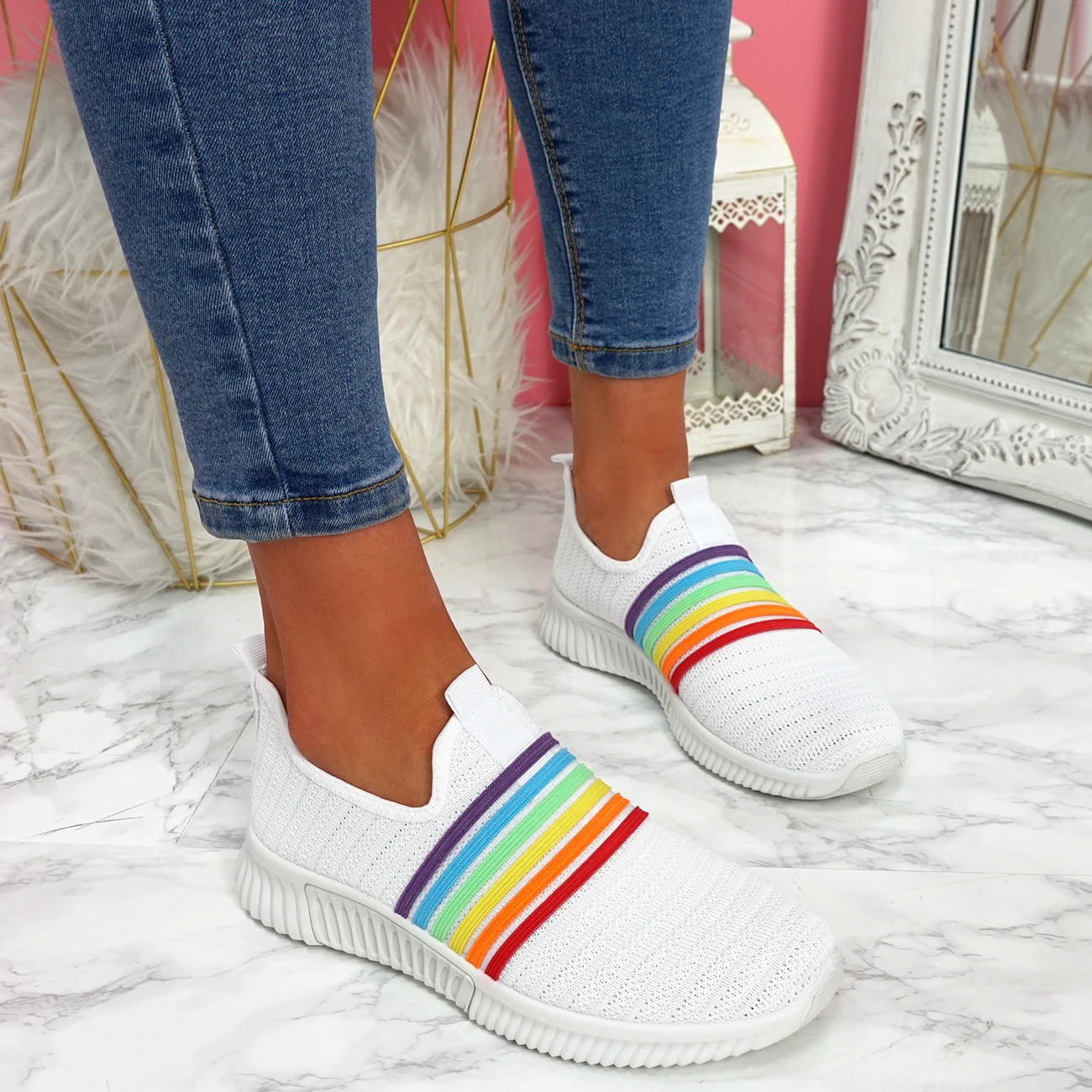 Кроссовки женские, летние, с низким верхом, из вулканизированной сетки, радужного цвета, 2020