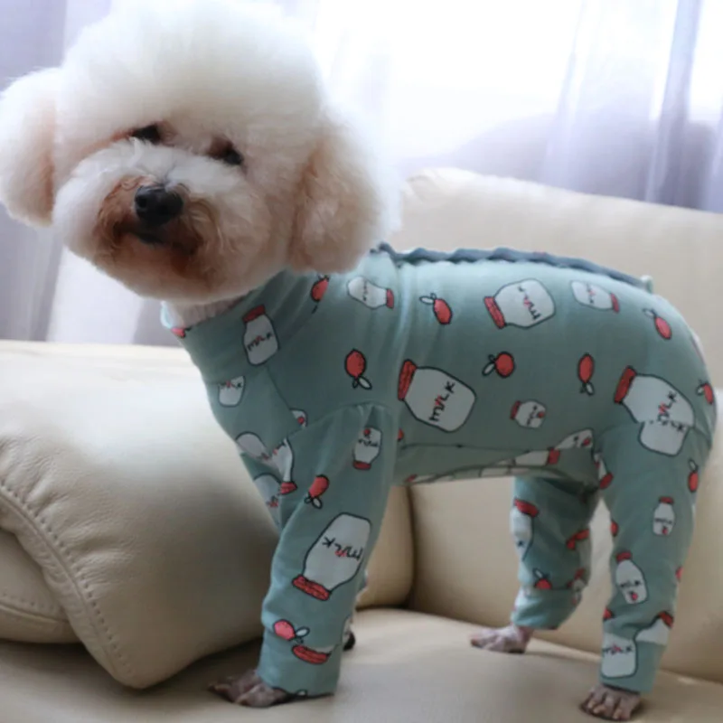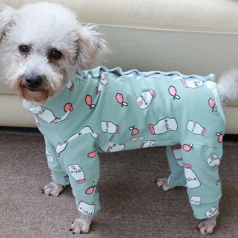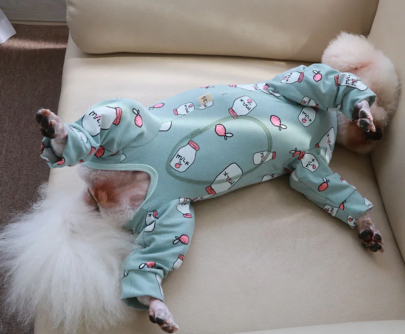 Комбинезон для собаки тонкая одежда из 100% хлопка для щенков комбинезон с принтом для маленьких собак защита живота Стрейчевые пижамы Пудель домашняя одежда