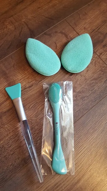Очень быстрая доставка, хорошо упакована, выглядит так, как на фото, мягкая губка, Силиконовая зубная щетка тоже хорошо смотрится.