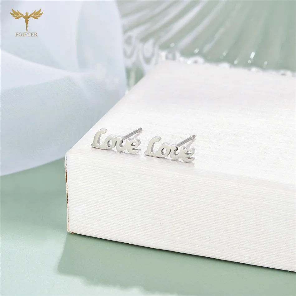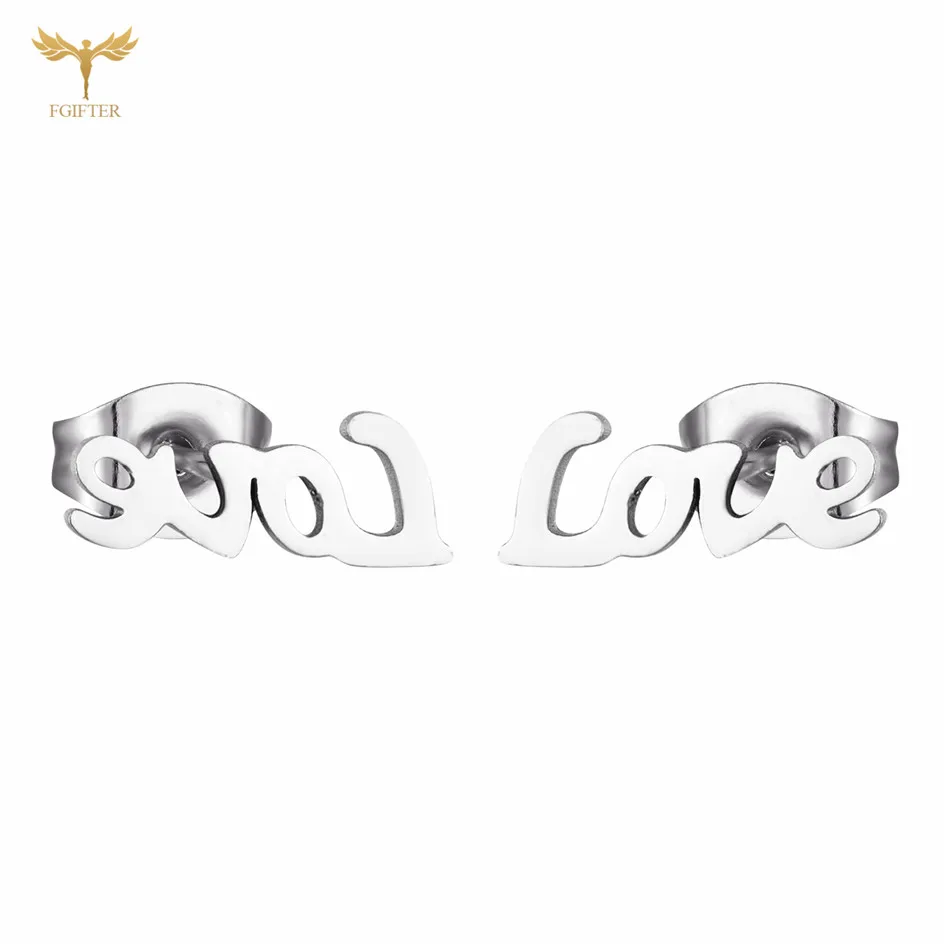 Серьги-гвоздики с надписью LOVE Женские романтичные серьги аксессуары для влюбленных из нержавеющей стали ювелирные изделия оптом