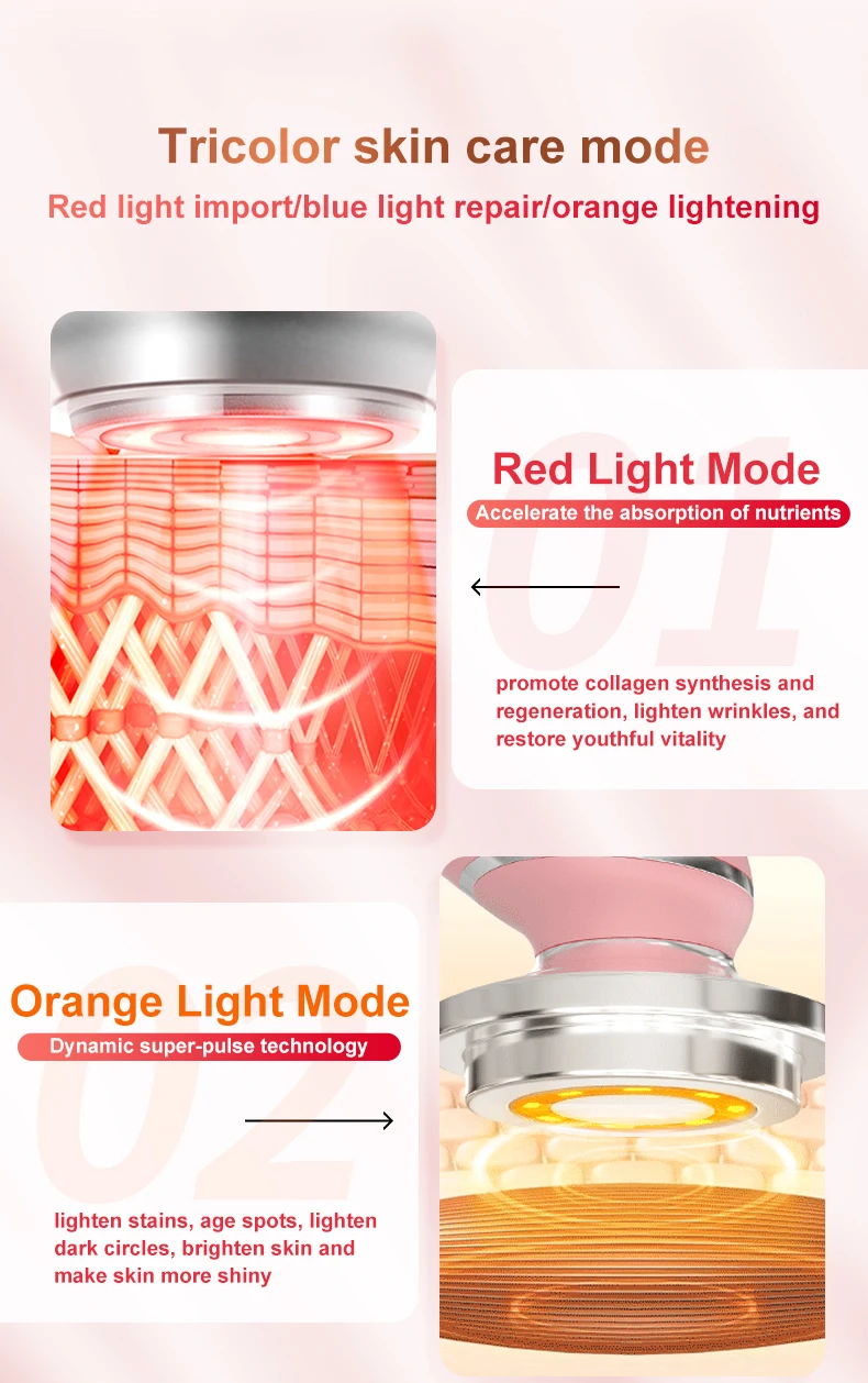 Характеристики продукта:Бренд: AmazeFanРежим: 7 режимовНоминальная мощность: 4 ВтЕмкость аккумулятора: 750 мАчРазмер: 166*50*47 ммНапряжение зарядки: 5 В/1 АВремя зарядки: около 3 часов[Положительные и отрицательные ионы] Используя принцип положительного и отрицательного ионного притяжения, грязь в глубоких порах разряжается через биологический ток и тщательно очищается. Косметические ингредиенты проникают в нижний слой кожи через ионитофорез.[Вибрация] механическая вибрация и стимуляция напряжения принимаются для затягивания кожи человека, повышения эластичности и улучшения метаболизма клеток кожи.[Теплый] теплый массаж способствует впитыванию, растягивает текстуру кожи и делает ее пухлой.[Трехцветная Функция] красный и яркий; Синий ремонтный оранжевый светильник.[7 режимов] подтяжка кожи, осветление цвета кожи, защита от морщин, удаление морщин, удаление лица, очищение от детоксикации.