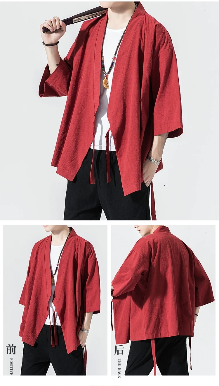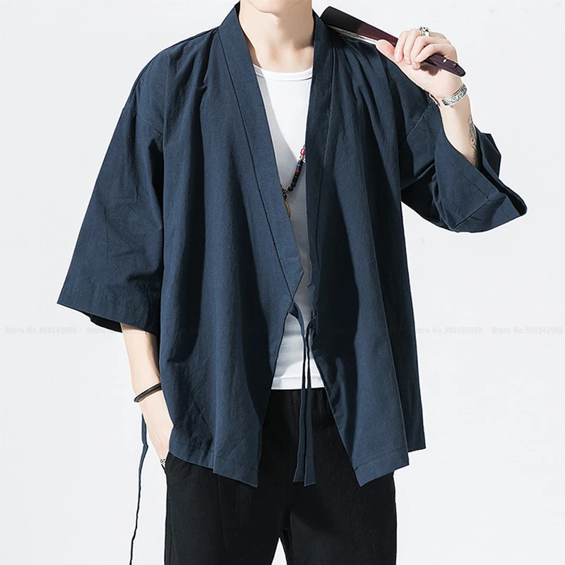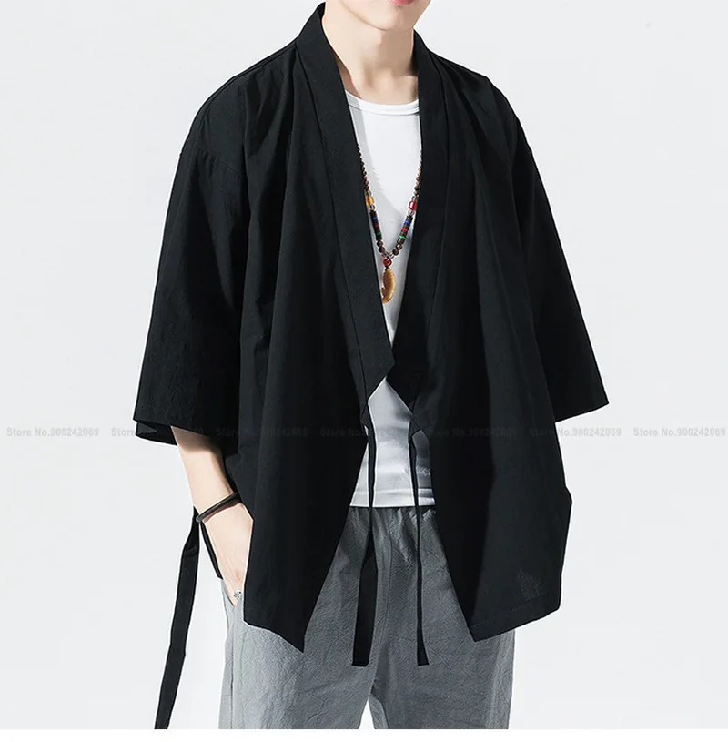 Кимоно мужское в китайском стиле, модный Свободный черный кардиган в стиле ретро, пальто, топ, халая в японском стиле Харадзюку, азиатская Восточная одежда