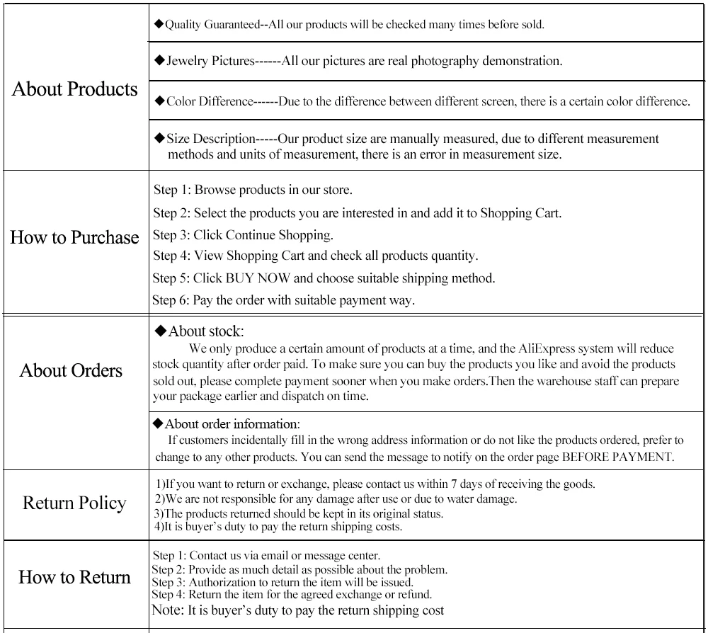 Удовлетворенность ваших клиентов и положительные отзывы очень важны для нас, пожалуйста, оставьте нам положительные отзывы и 5 звезд, если вы удовлетворены нашей продукцией и обслуживанием. Если у вас есть какие-либо проблемы, пожалуйста, не стесняйтесь связаться с нами, прежде чем оставить отрицательный отзывы. Мы сделаем все возможное, чтобы решить ваши проблемы и обеспечить лучшее послепродажное обслуживание клиентов.
