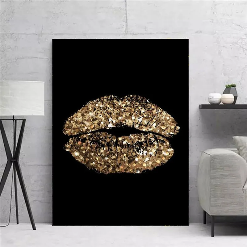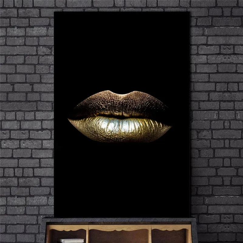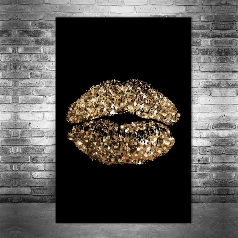 Абстрактные золотые сексуальные губы, холст, фотообои черного цвета для женщин, художественные картины, домашний декор для стен icon star icon star icon star icon star icon star