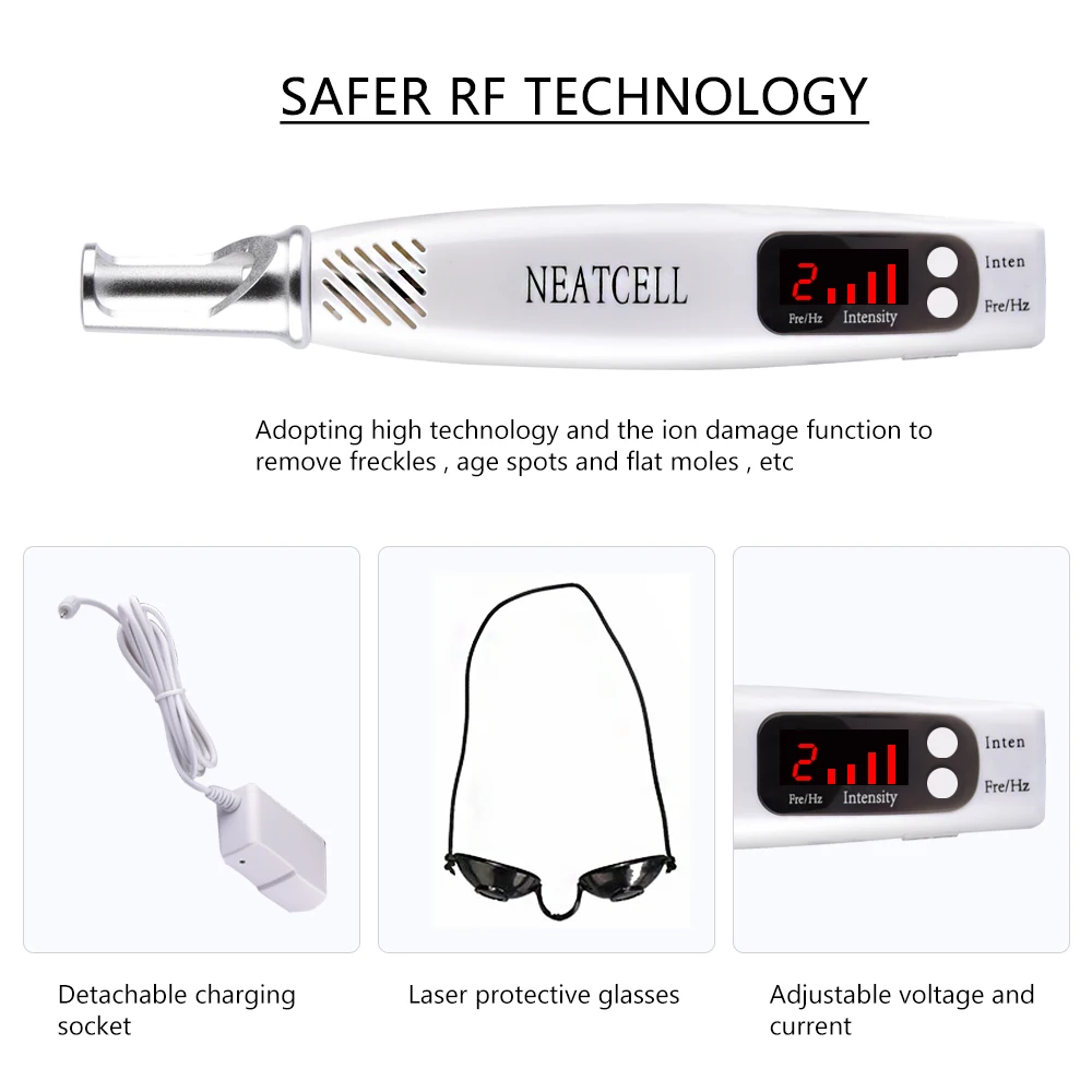 1. Эффективность: лазерный луч, изготовленный из этой ручки, очень эффективен в борьбе с любыми темными пятнами на коже (татуировки, родинки, шрамы от акне), в результате чего они исчезнут.