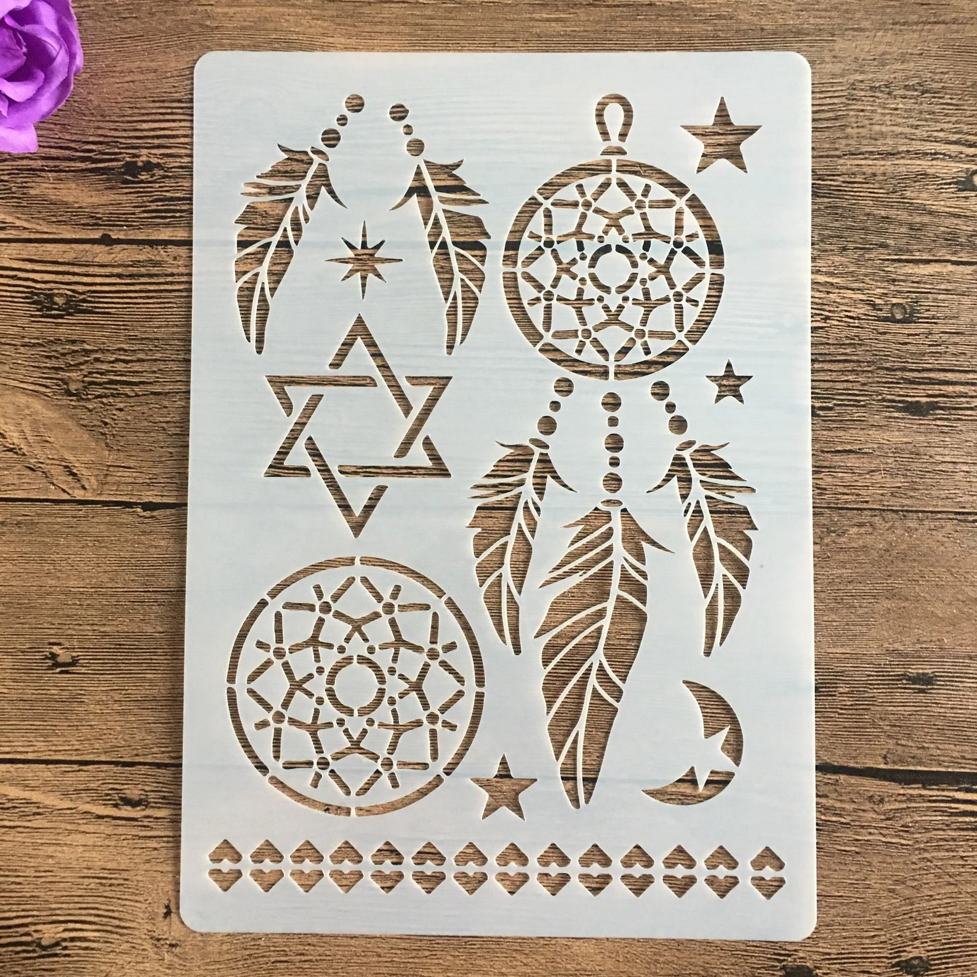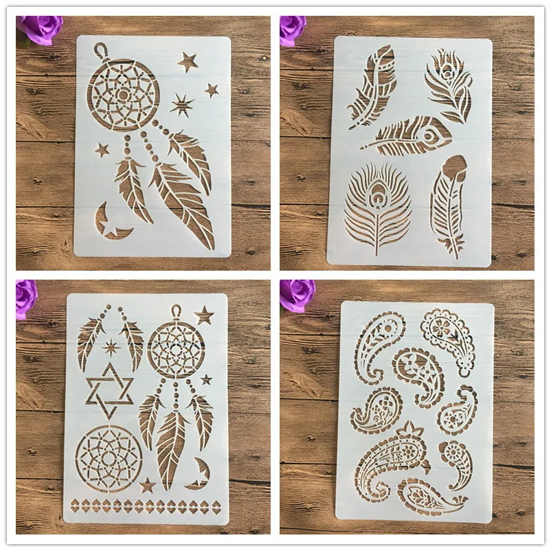 4 шт.компл. А4 Мандала винтажный узор перья серьги трафареты живопись раскраска тиснение, Скрапбукинг альбом декоративный шаблон