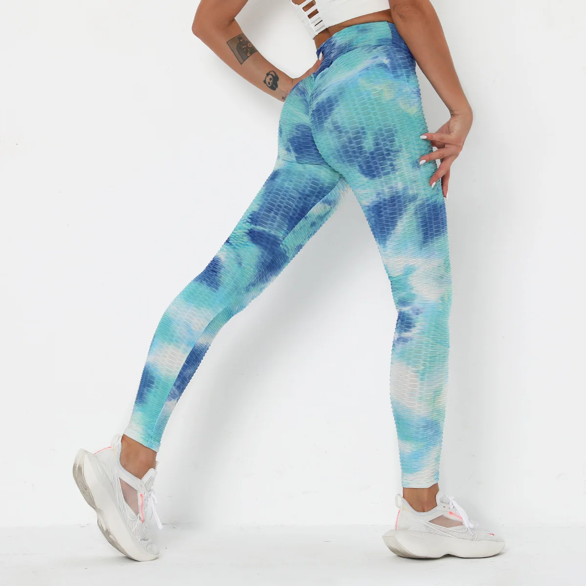 Леггинсы с эффектом пуш-ап, эластичные штаны для фитнеса с высокой талией, для бега и тренировок, тай-дай, 2020