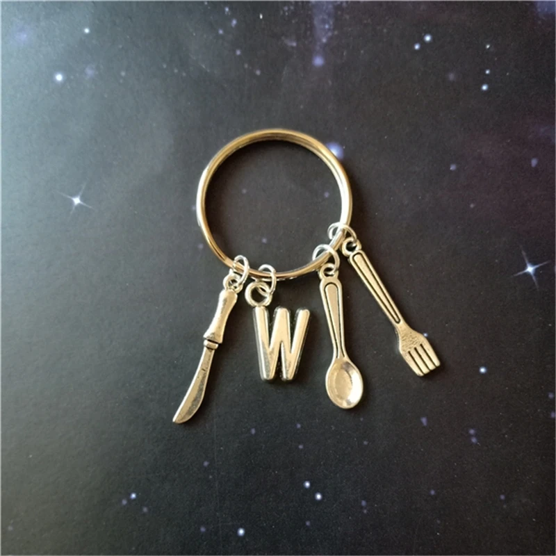 Модные украшения, винтажные столовые приборы, нож, вилка, ложка, Очаровательные Подвески, брелок, начальный брелок, подарок шеф-повара, подвеска для автомобильного ключа