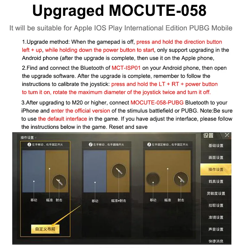 3. После обновления до M20 или выше, подключите MOCUTE-058-PUBG Bluetooth к вашему iPhone и войдите в официальные версии программы stimism battlefield или UBG.
