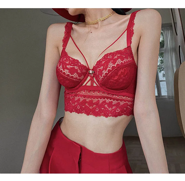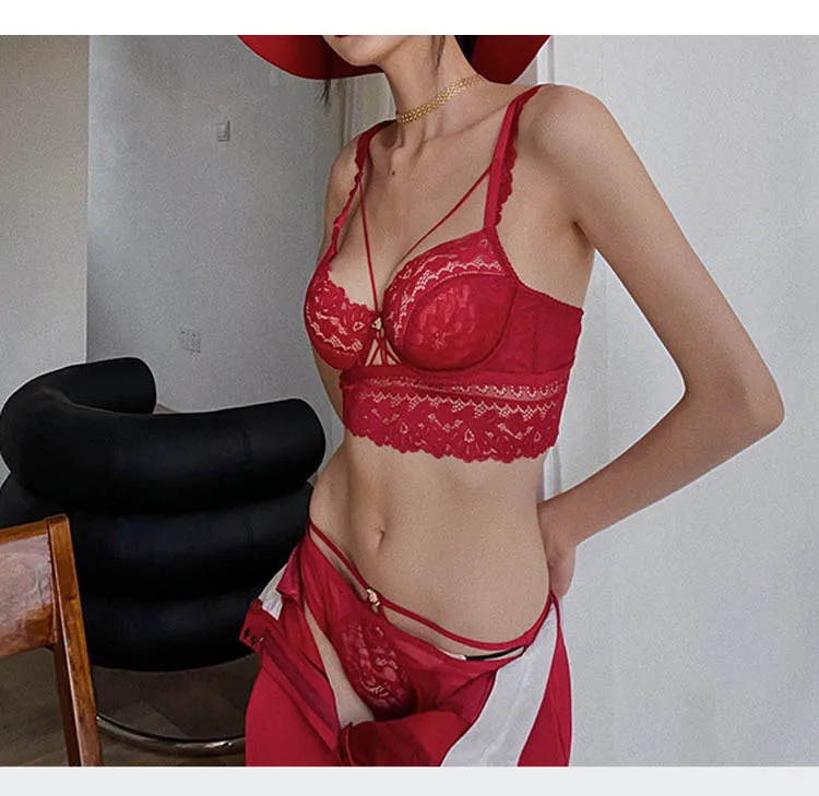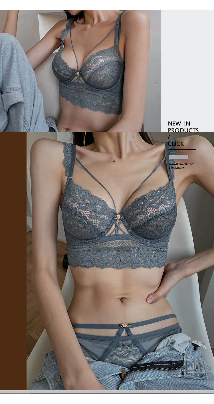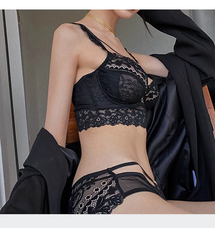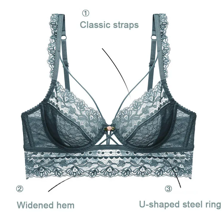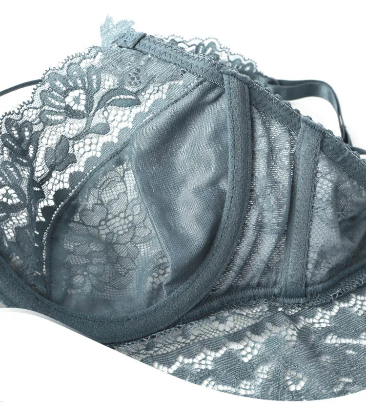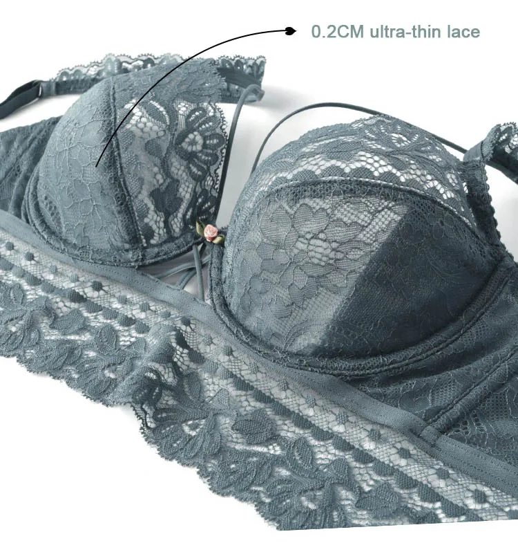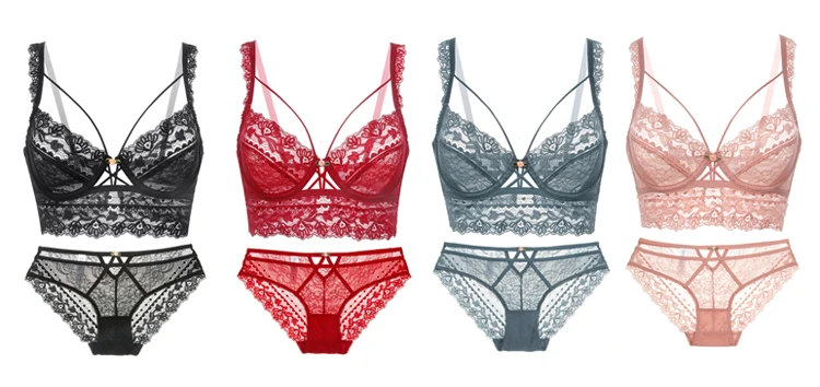 Комплект нижнего белья женский кружевной с бюстгальтером пуш-ап, женские прозрачные трусики