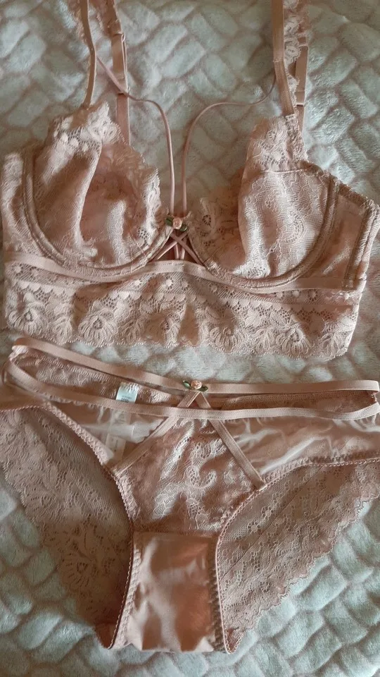 Набор нижнего белья. Удобное и утонченное кружевное изделие. Размер основан на сделанных измерениях porównanych с таблицей. Находится на графе двух размеров wybralam, этот маленький бюстгальтер с заботой о бюстгальтере и висячих завязках. Это сделано, aczkolwiek butt. Возможно, один набор не работает, поэтому можно для справки wezmę этот ciut больше. Трусики довольно нормальные/Средняя Талия, определенно не высокие. Очень рекомендую 10/10. Заказал 13/01 добарло для paczkomatu 26/01