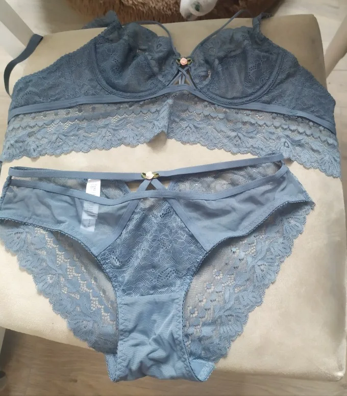 Комплект потрясающий, я никогда не думал, что моя грудь будет выглядеть так хорошо в тонком кружевном бюстгальтере, как это! Очень красивые и удобные трусики, идеально подходят для бедер 89 см. Очень рад покупке, его превосходно мой новый модный комплект-идеально сидит + Комфорт + внешний вид! Закажем еще один в черном цвете. Единственный дефект в том, что продавец дожидался до последнего дня отправки.