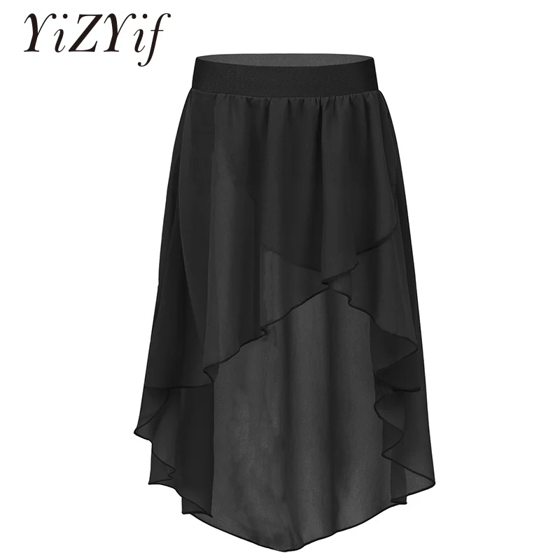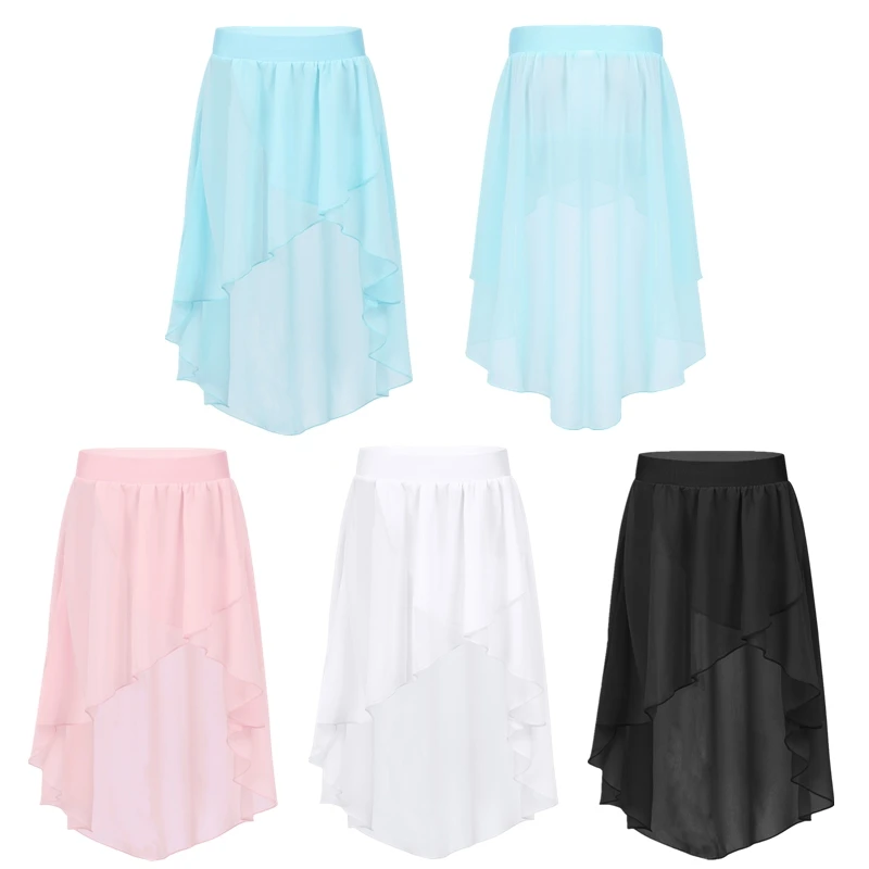 Одежда для балета для девочек; Юбки для танцев неравномерной длины эластичная резинка на талии; Шифоновая балетная юбка для девочек; Юбка в стиле джаз танец студия Практика Производительность