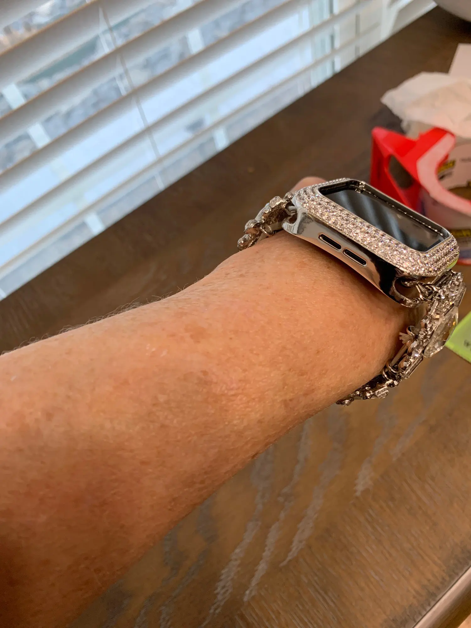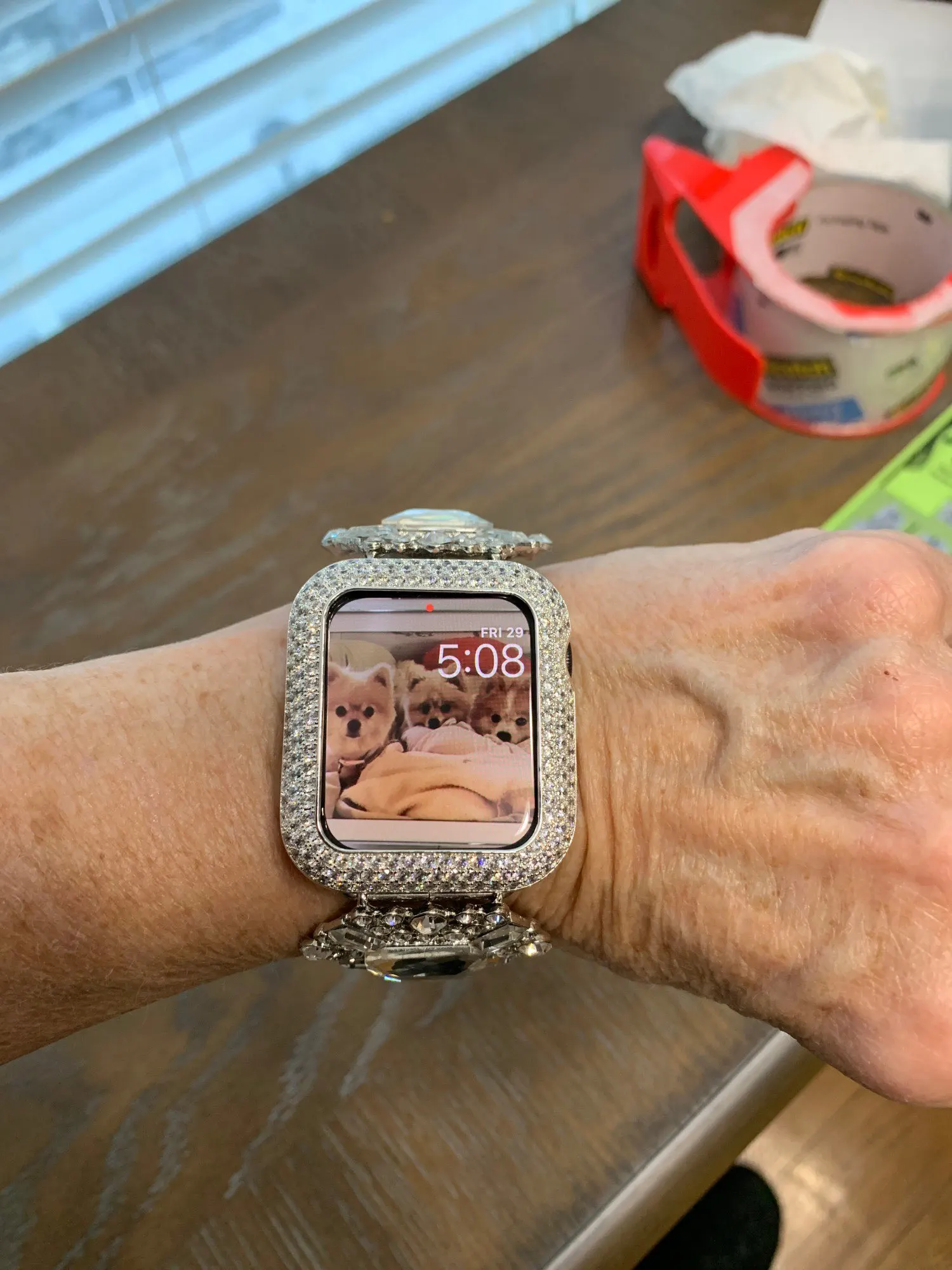 У меня 44 мм Apple Watch, поэтому я купил блестящий чехол 44 мм, и он слишком большой. Часы кружатся в чехле и нажимают номера разблокировки на часах. Непригодный для использования, если вы не поставите его jimmy. Что я сделал! Кроме того, Чехол красивый и выглядит так, как на фото