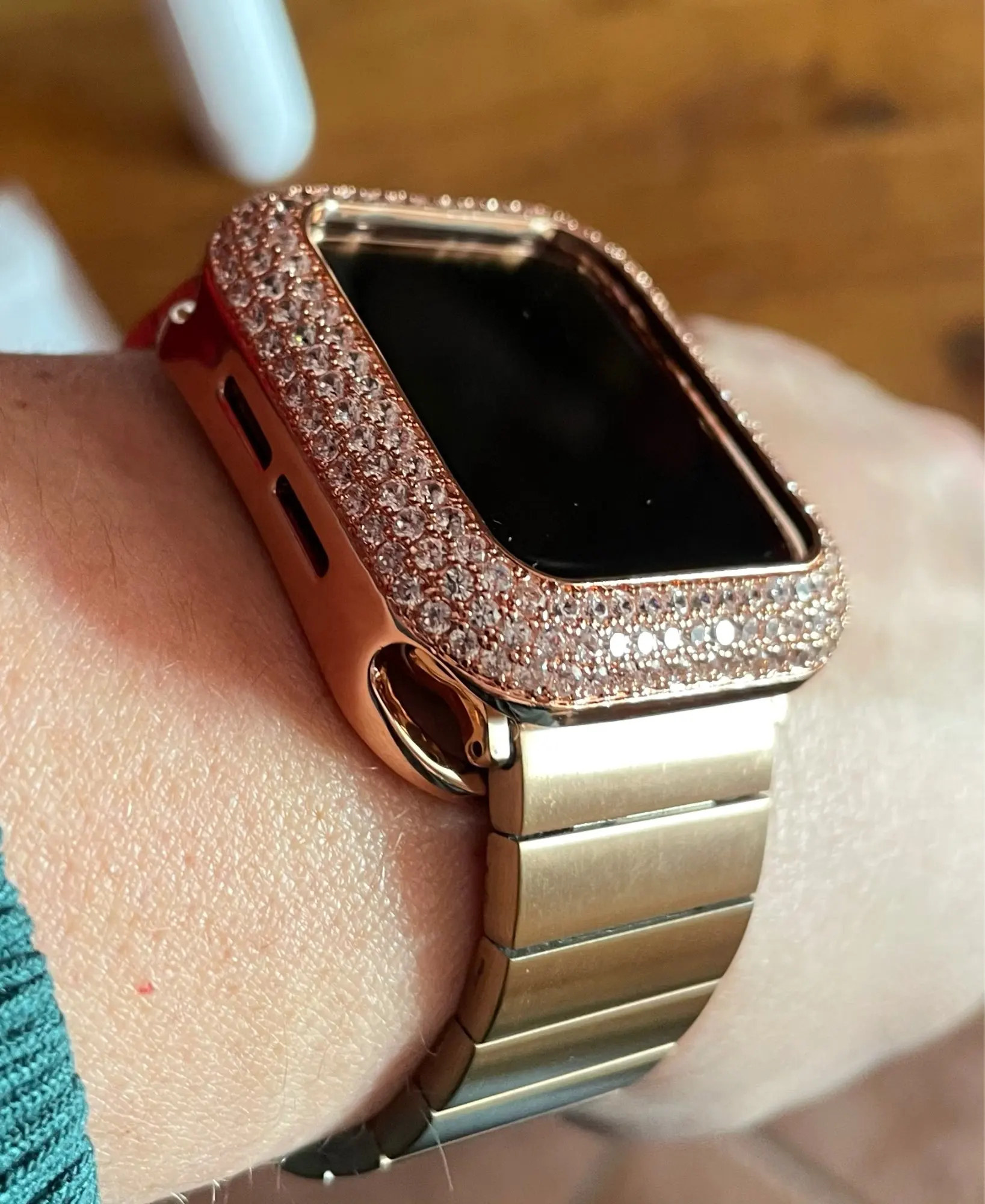 Блестящий чехол для Apple Watch 7 SE 6 5 4 3 40 мм, свободный стильный защитный чехол с рамкой из бронзы и металла для ювелирных изделий, 41 мм, с кристаллами, 45 мм
