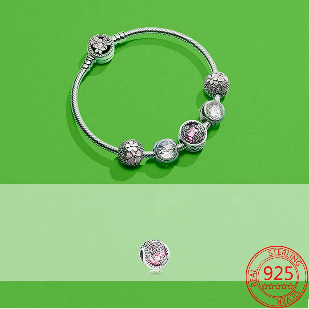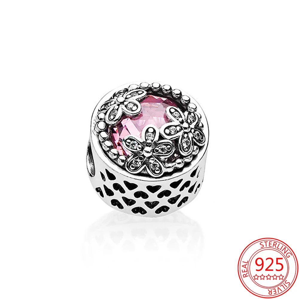 Мерцающие серебряные подвески в виде цветка маргаритки, подходят для оригинальных браслетов Pandora, ювелирные изделия DIY
