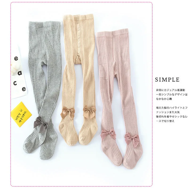 Колготки для детей, весна-осень-зима, хлопковые колготки с бантом для маленьких девочек, носки, детские вязаные колготки для младенцев