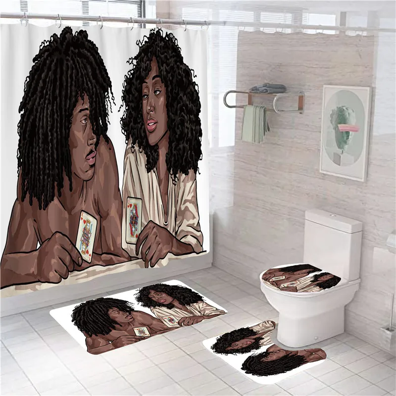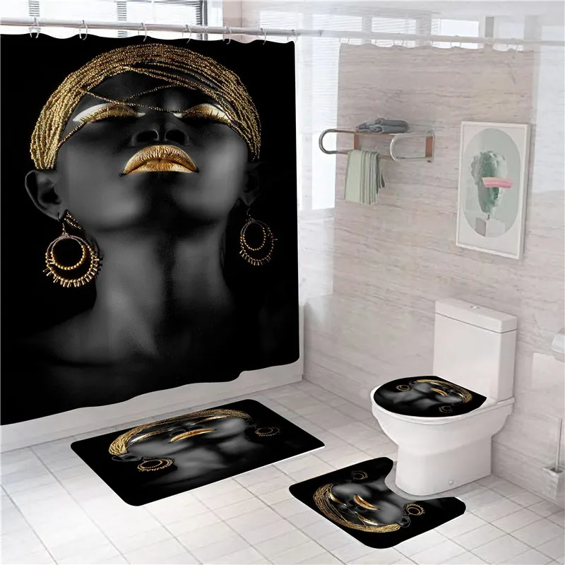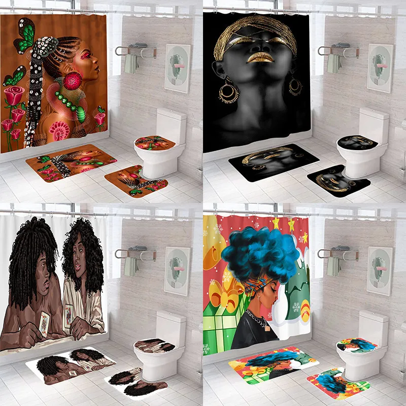 Сексуальный, Африканский, женский, принт, водонепроницаемый, ванная комната, Душ, занавеска, набор, с, противоскользящие, коврики, туалет, крышка, крышка, ванна, коврики, дома, украшения,
