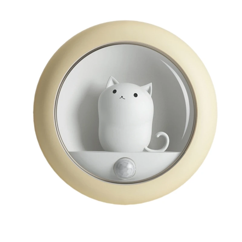 Творческий Кот умный светодиодный ночник PIR датчик движения USB Перезаряжаемый светильник Декор D0AD