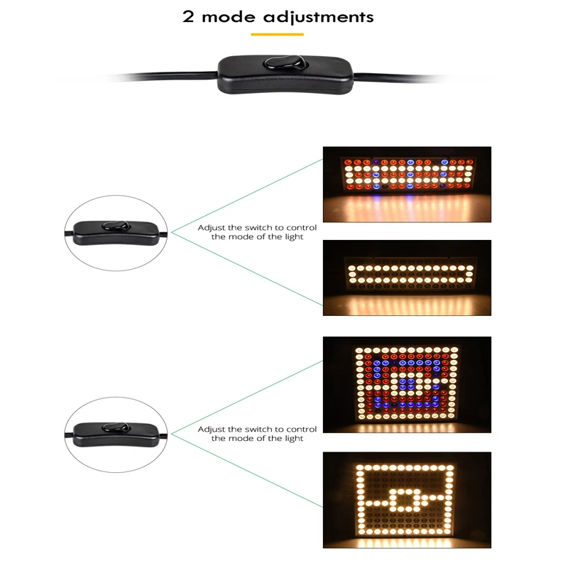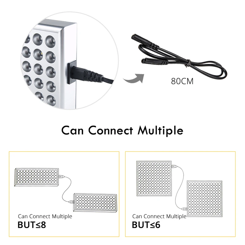 Наконечники: ИК, УФ-светодиоды выглядят тусклыми, это нормально, не волнуйтесь. Для энергосберегающего дизайна, 25 Вт потребляет только около 8 Вт, 45 Вт-14,5 Вт, намного лучше, чем та же Товар на рынке. Подходящее место: садоводство, Рассада/теплица, овощи/домашнее растение, световая добавка Полный спектр: 25 Вт 2835 Чип 75 светодиодов; 45 Вт 2835 Чип 144 светодиодов; СВЕТОДИОДНЫЕ Чипы: 25 Вт 75 светодиодов, Красный: 32, Синий: 7, теплый белый: 32, УФ: 2, ИК: 2 45 Вт 144 светодиодов, красный: 51, синий: 24, теплый белый: 63, УФ: 3, ИК: 3 Угол обзора светодиодов: 120 смешанный Рабочее широкое напряжение: можно использовать от 85 В до 265 В. Частота: 50/60 Гц; Сертификаты: CE, ROHS, FCC Советы по использованию:-Рекомендуемое Непрерывное время работы: 10-16 часов в день-только для использования в помещении, не водонепроницаемый. Рекомендуемый рост растения: 12-50 дюймов в зависимости от стадии роста.