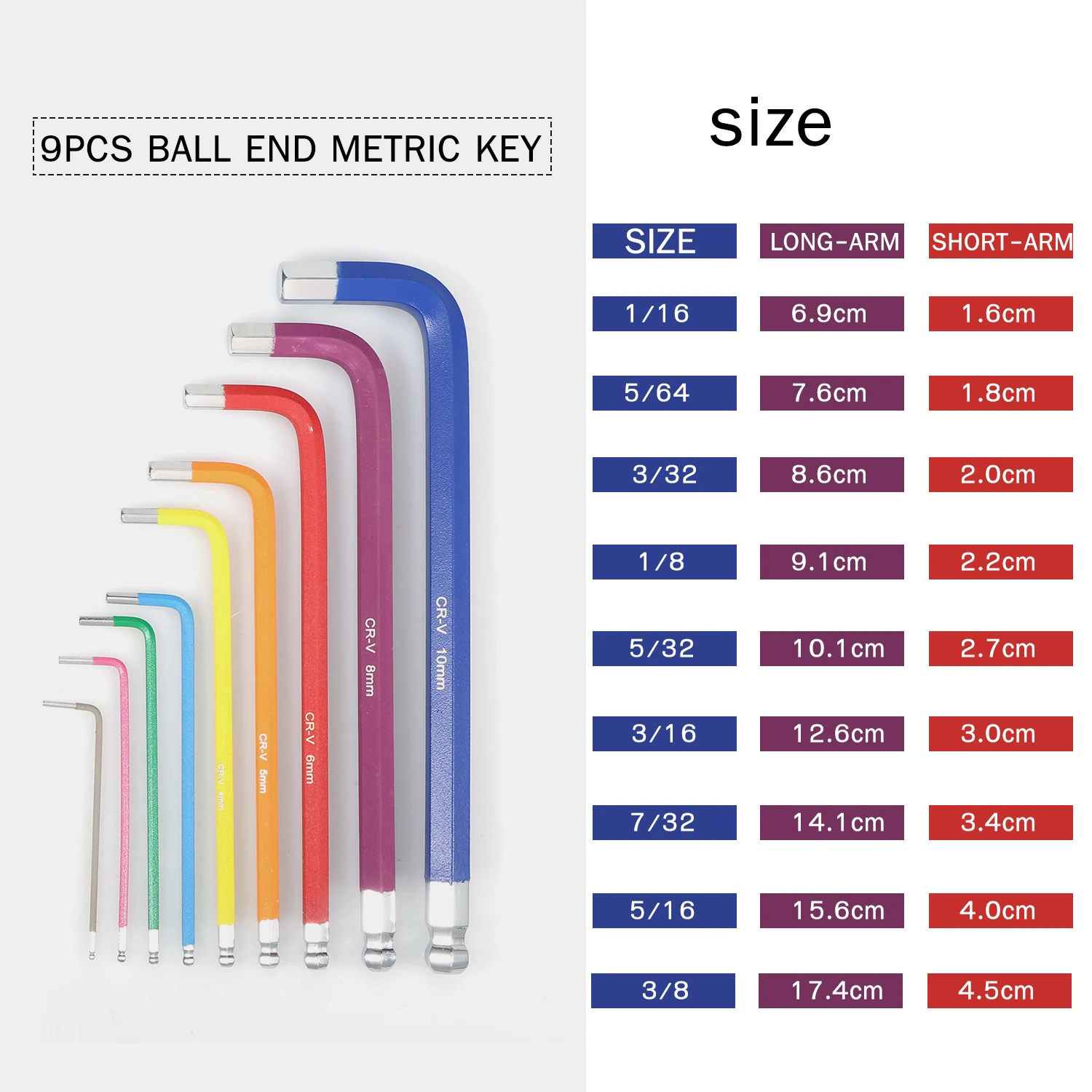 Набор многоцветных L-образных ключей, 18 шт., Набор шестигранных ключей с длинным шариковым концом, хромованадиевая сталь, Набор шестигранных ключей промышленного класса