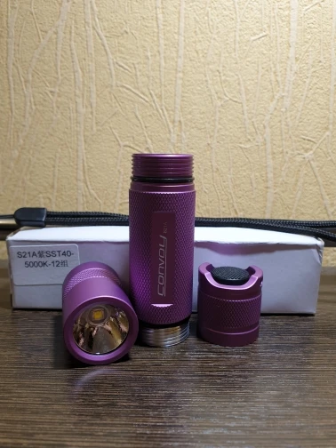 Это моя вторая S21A-IMO, это действительно хороший фонарик с отличным соотношением цены и качества. Различия с этим (новым) и моим старым: -Лучше (сильнее) пружины -Более зеленый оттенок на краях основного светового пятна (правый beamshot) -Красивый фиолетовый цвет (я люблю яркие цвета) Идея для продавца: было бы приятно включить некоторые пластиковые трубки в качестве трубки адаптера 18650